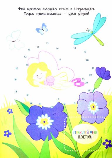 Здесь тебя ждут картинки-сюрпризы. Соединяй цифры по порядку и раскрашивай получившиеся картинки. А потом укрась каждую страничку яркой наклейкой!