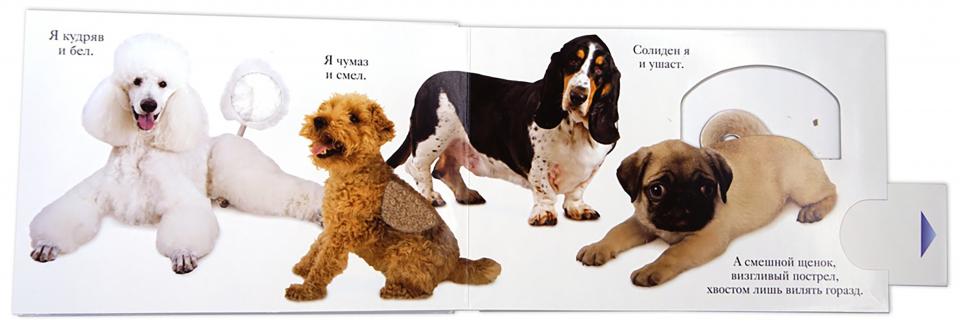 Handling time: 14 days Лай и мех для всех-всех-всех.Всех детишек порадует эта чудесная интерактивная книжка.Каких собак в ней только нет! Вислоухие, нахальные, пушистые, чумазые…С ними можно играть! Их можно гладить!Для детей до 3-х лет.Внимание! Содержит мелкие детали.Использовать под непосредственным наблюдением взрослых. Пять причин купить 1В мире продано более 10 миллионов экземпляров книг Мэтью Ван Флита. 2Первые места в рейтинге The New York Times среди развивающих книг для детей. 3Уникальный формат, развивающий мелкую моторику и кругозор у малышей. 4Страницы сделаны из плотного качественного картона, у книги есть подвижные и тактильные элементы. 5Яркие, легко запоминающиеся образы и забавные стихи знакомят детей с окружающим миром.