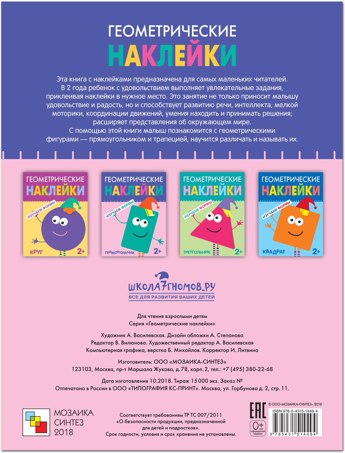 #ASTTD# Search Terms: Мозаика-синтез , Mozaika-sintez , Геометрические наклейки , Geometricheskie nakleiki , 9785431514494 , 978-5-4315-1449-4 , 1272704