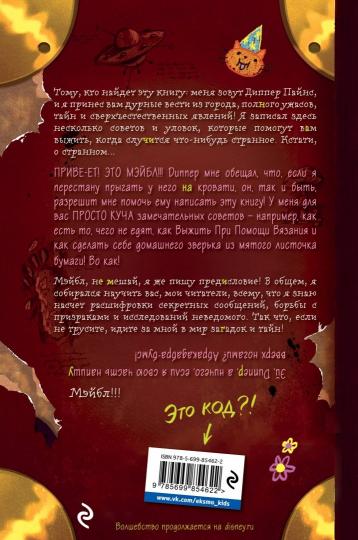 Handling time: 14 days Отличная находка для любителей сериала «Гравити Фолз».Вас ждет незабываемое путешествие по городку Гравити Фолз вместе с Диппером и Мэйбл. Шутки, приколы и веселье нон-стоп.Яркое оформление. Бонус — плакат любимой музыкальной группы Мэйбл, который можно повесить на стену.Самый популярный мультяшный проект среди детей и взрослых!Disney. Суперновинка для поклонников сериала "Гравити Фолз" - одного из самых нашумевших мультсериалов! Сериал "Гравити Фолз" пользуется бешеной популярностью как среди взрослых, так и подростков. "Дневник Диппера и Мэйбл" не только аутентичный фанатский продукт (каждое имя, локация, название сверено с сериалом), но и прекрасное издание с непередаваемым сарказмом, шутками и креативным подходом и информацией, которой не было в сериале и которую можно получить только из книги. А для самых преданных поклонников сериала внутри издания находится вклейка - карта Гравити Фолз и постер любимой музыкальной группы Мэйбл! (Можно повесить на стену!)