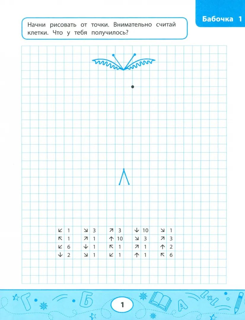 Эта книга поможет развить внимательность, пространственное мышление, мелкую моторику и фантазию и получить при этом настоящее удовольствие. Каждая страница хранит в себе маленькую тайну, которую ребёнок раскроет, следуя инструкции шаг за шагом. Понадобится карандаш, любопытство и немного терпения. Всего несколько штрихов, и вот уже на странице летают экзотические бабочки и шевелят усами жуки.Сборник окажет неоценимую помощь дошкольникам и младшим школьникам, поскольку в процессе построения рисунка происходит развитие мышления и пространственного воображения ребёнка, что напрямую влияет на становление его умственных способностей.Навык пересчитывания клеток пригодится не только на уроках математики в начальной школе, но и в старших классах, когда начнётся геометрия.