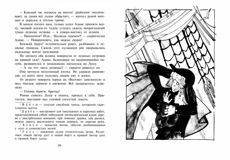 Handling time: 19 days Спасая жизнь товарища, шестиклассник Руслан Раевский отправится вслед за ним в Прошлое. Вслед за братом провалится в 19-й век и Луша: "эффект близнецов" в хронодайвинге срабатывает неукоснительно. Как найти друг друга, если вас разбросало во времени и пространстве? Как устоять перед лицом опасностей, как выжить, как не потерять надежды? Впереди у главных героев книги - современных подростков, попавших в серьёзную переделку, - тысячи морских миль, у одного под парусами "Надежды", у другой - на борту "Востока".Книга Елены Ленковской переносит читателя на корабли Первой российской кругосветки И. Ф. Крузенштерна и Первой русской антарктической экспедиции Ф. Ф. Беллинсгаузена. Юные герои книги получили удивительную возможность пережить вместе с отважными российскими мореплавателями и радость открытия новых земель, и тяготы долгого пути. Они познакомятся с народами, населявшими далёкие неизведанные в то время страны. Проникнутся романтикой дальних странствий.Для среднего...Спасая жизнь товарища, шестиклассник Руслан Раевский отправится вслед за ним в Прошлое. Вслед за братом провалится в 19-й век и Луша: "эффект близнецов" в хронодайвинге срабатывает неукоснительно. Как найти друг друга, если вас разбросало во времени и пространстве? Как устоять перед лицом опасностей, как выжить, как не потерять надежды? Впереди у главных героев книги - современных подростков, попавших в серьёзную переделку, - тысячи морских миль, у одного под парусами "Надежды", у другой - на борту "Востока".Книга Елены Ленковской переносит читателя на корабли Первой российской кругосветки И. Ф. Крузенштерна и Первой русской антарктической экспедиции Ф. Ф. Беллинсгаузена. Юные герои книги получили удивительную возможность пережить вместе с отважными российскими мореплавателями и радость открытия новых земель, и тяготы долгого пути. Они познакомятся с народами, населявшими далёкие неизведанные в то время страны. Проникнутся романтикой дальних странствий.Для среднего школьного возраста.