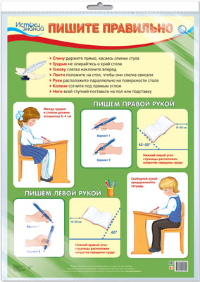 Handling time: 24 days Демонстрационный материал предназначен для работы с детьми в школе и дома. Показывает правильную посадку ребенка, положение листа бумаги и ручки как для правшей так и для левшей.