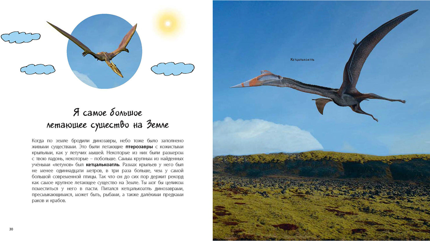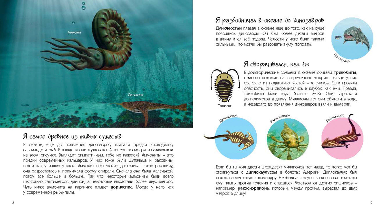 Наука помогает людям разгадывать тайны времени. Поэтому ученым сегодня многое известно об удивительных существах, которые миллионы лет назад плавали в воде, парили в небесах, бродили по земле. Книга рассказывает о динозаврах - древних ящерах, которые вымерли давным-давно, а когда-то были хозяевами планеты, и о других необыкновенных созданиях, населявших Землю в невообразимо далекие времена. Она написана простым, понятным языком и иллюстрирована сочетанием высококачественных художественных фотографий с забавными авторскими рисунками.Для дошкольного и младшего школьного возраста.