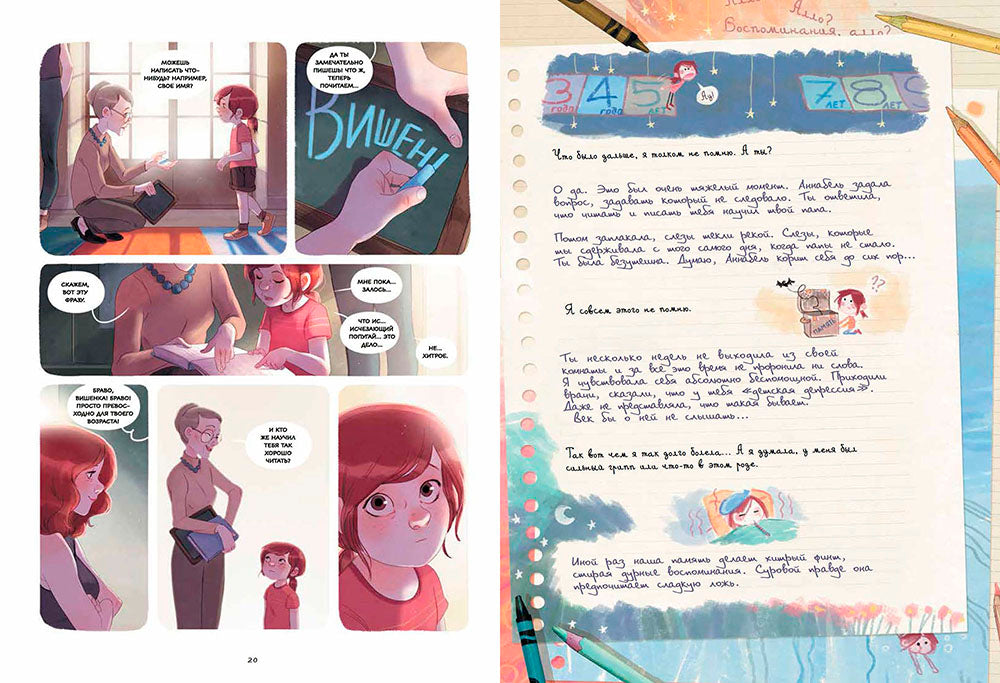 Handling time: 14 days О книгеНовая история серии раскроет тайну семьи самой Вишенки. Девочка долго шла к ней, помогая всем вокруг. Теперь пришло время погрузиться в свое прошлое - через переписку с мамой. Пятый том серии откроет нам и секрет самих дневников девочки - мы, наконец, поймем, почему она так не любит, когда взрослые что-то скрывают.Фишки книгиНеобычная структура: у книги есть событийная часть, которая нарисована как комикс, и дневниковая, в которой Вишенка осмысляет все происходящее.Книга расширяет границы возможностей. Ребенок почувствует в себе силы рисовать, писать, замечать необычное вокруг.Атмосфера личной истории создается благодаря рисункам Вишенки, ее фотографиям, дневниковым записям, а также акварельным иллюстрациям, которые повествуют о жизни героини.Первые тома серии переводят на десять языков.Для кого эта книгаДля детей от 8 лет, которым нравятся детективные истории.Для всех, кто любит комиксы.Для тех, кто мечтает писать.О серииСерия "Дневники Вишенки" завоевала популярность во всей Европе, а в 2014 году получила главный приз Ангулема (самый престижный европейский фестиваль "рисованных историй") как лучшая серия комиксов для детей.Сегодня в серии 5 томов, каждый из которых посвящен отдельному приключению Вишенки и ее подруг. На наших глазах юная мечтательница превращается в настоящего писателя, учится наблюдать, видеть мир, записывать истории, попутно проживая непростые личные ситуации.Захватывающее и вдохновляющее чтение для детей и взрослых.Об авторахЖорис Шамблен родился 29 января 1984 года. Еще ребенком он влюбился в графические романы и уже тогда знал, что комиксы станут его призванием. Сегодня он посвящает все свое время созданию комиксов и книг для детей, и даже пишет свой первый роман.Орели Нейре - иллюстратор из Лиона, Франции. Когда она была маленькой, часто пряталась и читала всю ночь напролет, но еще больше она любила рисовать. Сегодня ее жизнь не сильно изменилась, и она много работает, чтобы ее идеи претворились в жизнь.Для среднего школьного возраста.