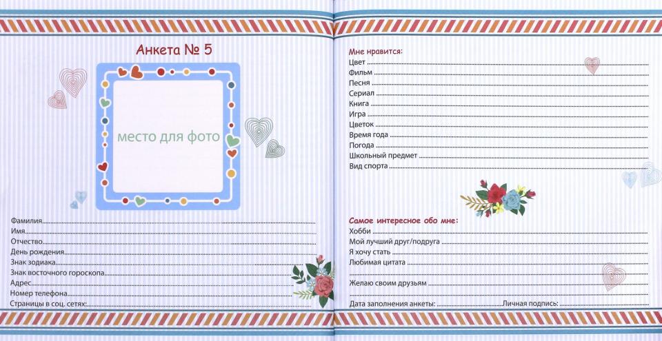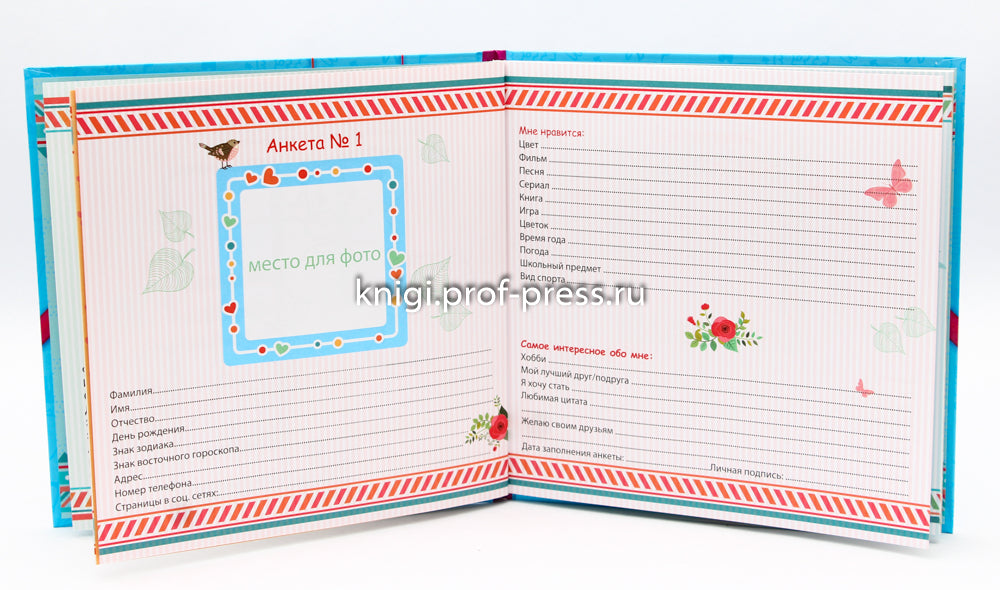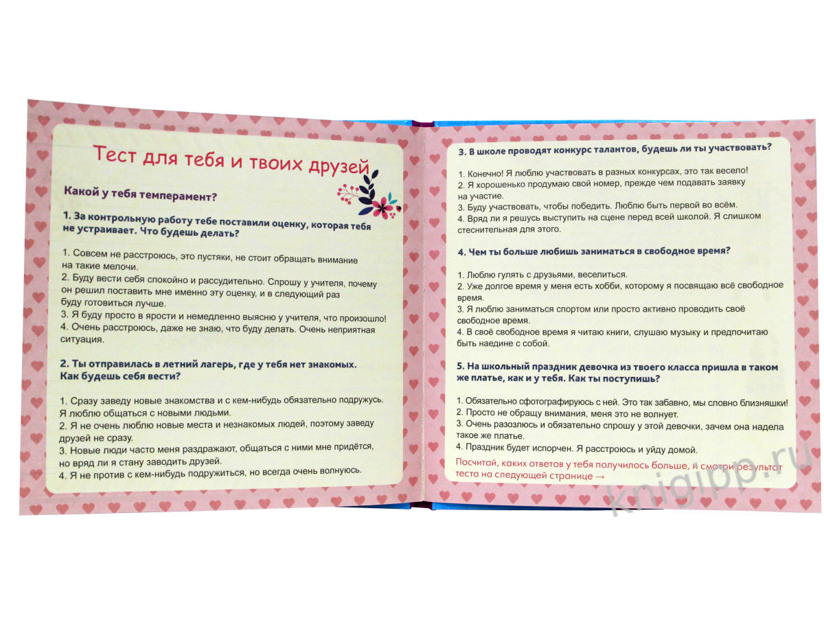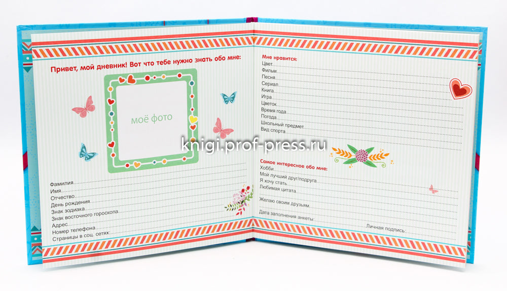 Красочные дневнички в твёрдой обложке не только надолго сохраняют яркие события, но и помогают изменить творческие навыки! Маленькие красавицы вклеят фотографии исключительных моментов, запишут волшебные сны, сокровенные мечты и даже придумывают садовый макияж и маникюр! На страницах с коллажами можно рисовать и клеить наклейки! Друзья обязательно заполните интересную анкету! Дневнички созданы специально для стильных и продвинутых девчонок!Для детей младшего и среднего школьного возраста.