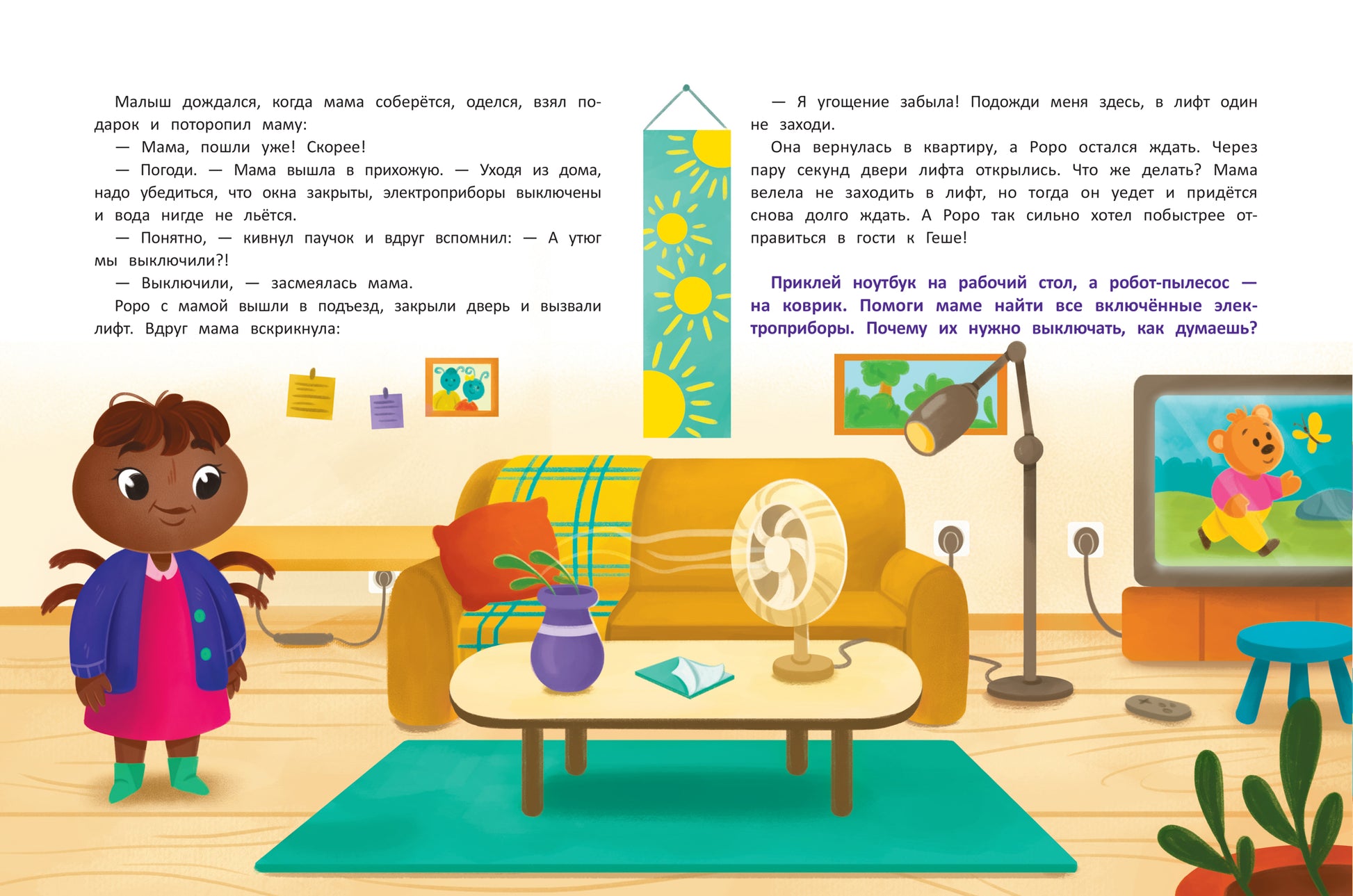 Книга "Дома" расскажет правила безопасности в доме или квартире: почему нельзя брать в руки горячие и острые предметы, как нужно обращаться с электроприборами, что делать, когда в дверь позвонили, и многое другое.