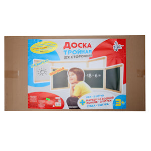 Многофункциональная магнитно-маркерная доска для развивающихся занятий, письма и рисования с различными поверхностями. Одна поверхность доски предназначена для создания изображений в виде мелома, вторая и третья — магнитных, их можно использовать для крепления обучающих материалов, которые не входят в комплект, но вы можете приобрести их и использовать в другом интернет-магазине. К доске точны наборы из серий «Пифагорики», «Магнитные истории», «Магнитные мозаики-конструкторы». Магнитная доска – отличный инструмент для обучения ребенка счету, алфавиту или навыкам чтения. Здесь также можно рисовать маркерами на водной основе, три цветных маркера уже входят в комплект малыша. Комбинированная доска не занимает много места и может использоваться для большого количества развивающих игр. Настенную магнитную доску вы всегда можете купить в нашем интернет-магазине «Десятое королевство» без переплаты и наценок по цене производителя. На сайте в разделе «Магнитные доски и планшеты» представлены все варианты досок, выпускаемых нашим предприятием.Комплектация: - размер доски в разложенном виде 1640х460 мм - размер центральной доски 820х460 мм - размер боковых досок 405х460 ммРамка лакированная (шт) 3Мел - синий, красный, желтый (шт) 3Маркеры на водной основе - красный, синий, зеленый (шт) 3Петли подвесные (шт) 2Шурупы (шт) 4Рекомендации по использованию магнитной настенной доски № 13:1. Надежно закрепите дом на стене. При этом обратите внимание, что зеленая сторона центральной доски является лицевой.2. Высота расположения доски определяется ростом вашего ребенка, при этом нужно учитывать, что бы ребенок мог спокойно дотянуться до верхнего края доски.3. В разложенном состоянии на доске можно писать или рисовать мелом, на любом из трёх досок. Сложив боковые доски получают магнитную поверхность, на которой можно наносить слова, образцы, магнитные буквы и цифры, а также писать и рисовать маркером.