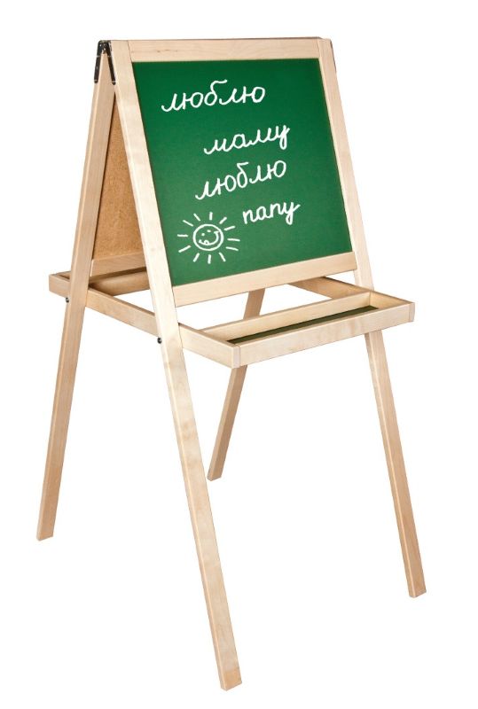Доска комбинированная №15 Молберт. Комплектация: - размер мольберта в собранном виде 970х530х460 мм - размер игрового поля 395х345 мм В наборе: Мел - 3 шт., Губка - 1 шт., маркер на водной основе - 3 шт., Подставка на пол - 1 шт. Материалы: дерево, металл, мел, текстильный материал. Для детей старше 3 лет.