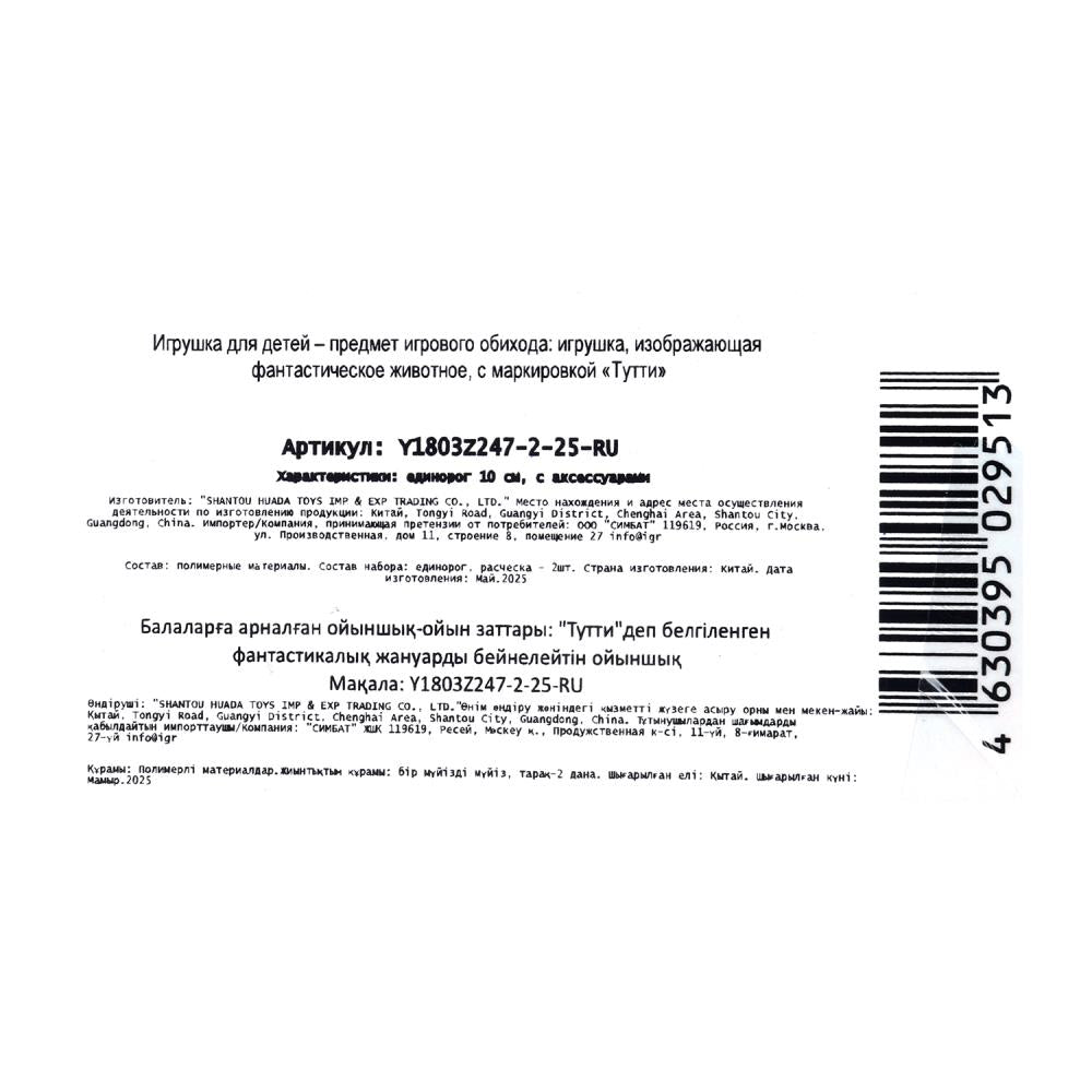 Единорог 10см, пластиковый, аксессуары 2шт Тутти в кор.2*180шт