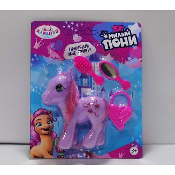 Игрушка "Единорог 11 см, пластиковый, 3 акса, на блистере КАРАПУЗ в кор.2*144шт". Размер: 0,245.