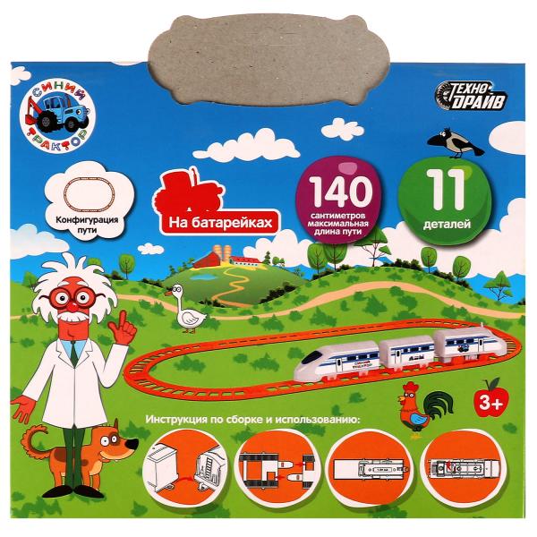 Железная дорога мультяшная СИНИЙ ТРАКТОР дл.пути 140, кор.19,7*24*3,5см ТЕХНОДРАЙВ в кор.2*72шт