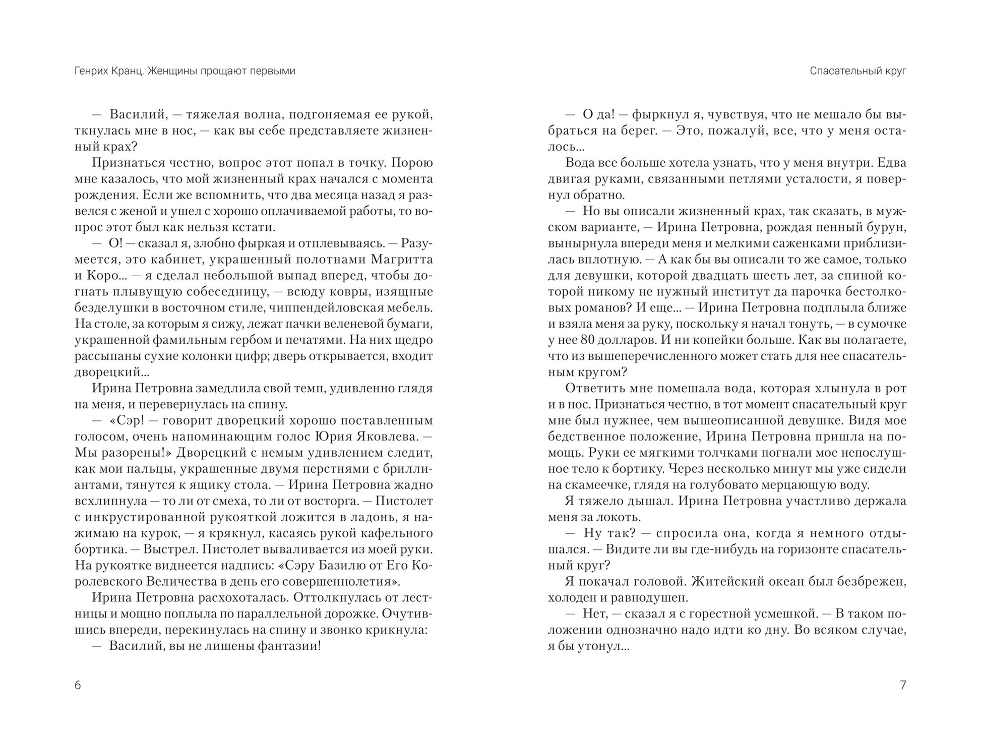 Аннотация к книге "Женщины прощают первыми" Кранц Г.:Жизнь современной женщины, как морская вода солью, перенасыщена событиями. Родители и дети, супруг и мир его забот, дом и хозяйство, работа и карьера — в этой суете очень мало места для медитации, для погружения в собственный мир, для взгляда на саму себя со стороны... Без этого осмысления жизнь пролетает незаметно, не оставляя засечек для воспоминаний.Книга Генриха Кранца "Женщины прощают первыми" в какой-то степени компенсирует этот недостаток. Героини его рассказов словно наблюдают за собой в зеркале. А там невинная шутка превращается в гротеск, рядовое событие — в провозвестника большого чувства, незаметно нанесенная обида — в возмездие. Современная женщина узнает в персонажах Кранца себя, свои поступки, слова, желания, но вместе с тем видит в отраженном мире, увы, обесценивание красоты и великодушия. Читать дальше…