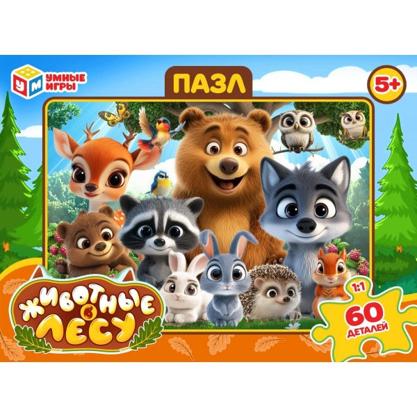 Животные в лесу. Пазлы в коробке 60 деталей. 190х141х35 мм. Умные игры в кор.24шт
