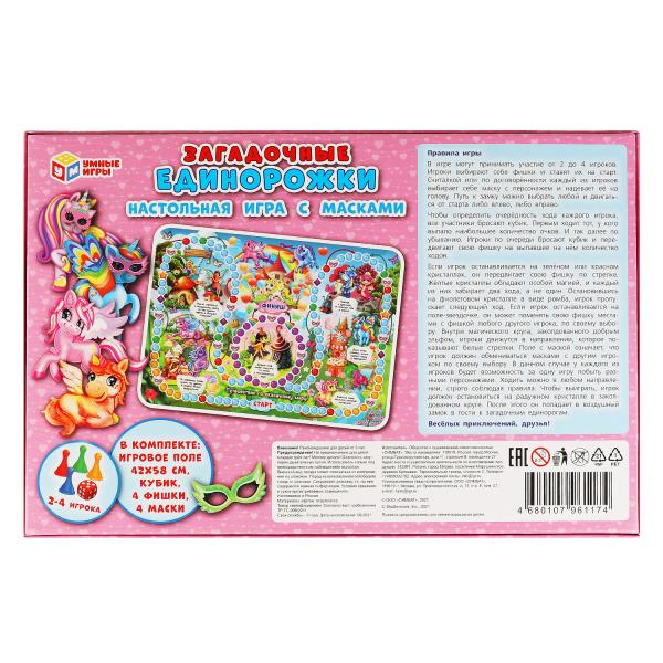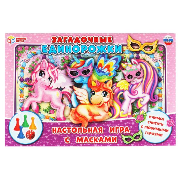 Загадочные единорожки. Настольная игра с масками. 217х330х27 мм 1 стр. Умные игры в кор.20шт