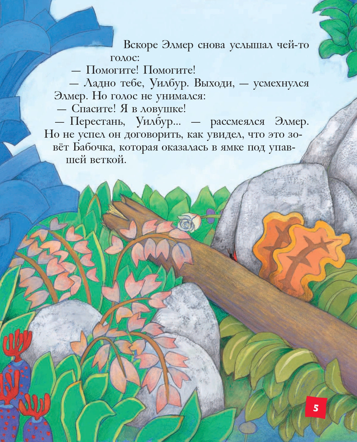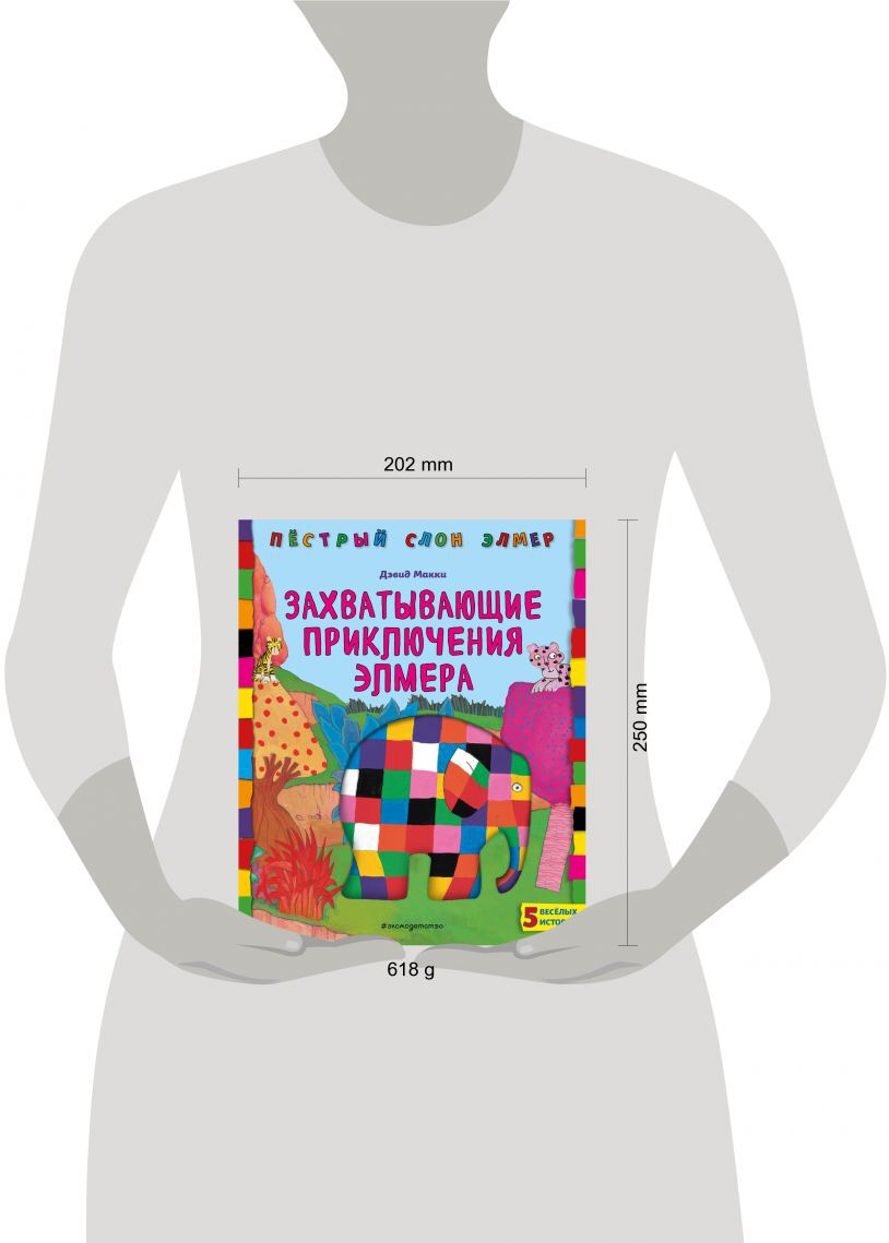 Handling time: 14 days Пестрого слона Элмера и других слонов ждут захватывающие приключения! На джунгли надвигается множество напастей: стадо бегемотов, наводнение, охотники и неведомое чудовище. Но благодаря оптимизму Элмера, его невероятной изобретательности, храбрости и искренней доброте ни одна проблема жителям джунглей не страшна – Элмер придумает выход из любой ситуации! Ведь даже если маленькая бабочка может спасти большого слона, то всем слонам вместе под силу многое, хоть прогнать охотников из джунглей! Пестрый слон Элмер и истории про него вдохновляют читателей быть добрыми, смелыми и помогать другим.Для дошкольного возраста.
