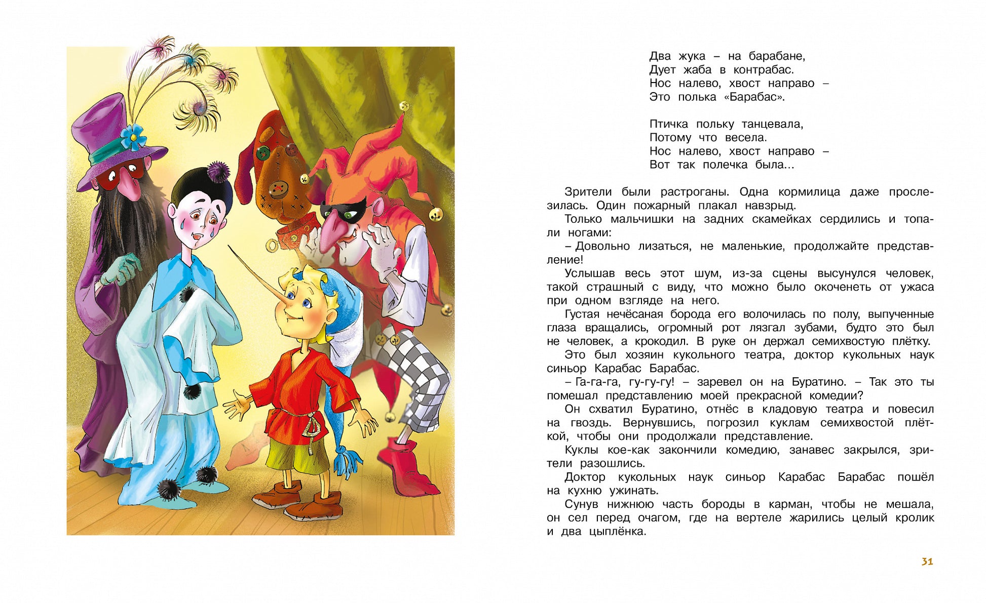 Это одна из самых любимых книжек нашей детворы. История деревянного человечка, озорного и непослушного, но доброго, искреннего и простодушного. Пройдя сквозь вереницу различных злоключений и испытаний, Буратино учится отличать добро от зла, набирается ума-разума, становится сильным и уверенным защитником для своих друзей и папы Карло. Получив от черепахи Тортилы золотой ключик и одолев злого Карабаса Барабаса, Буратино вместе с друзьями открывают свой...