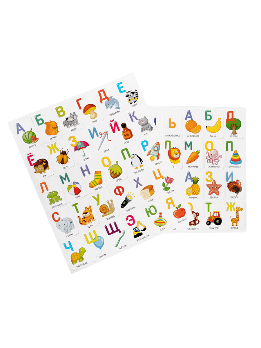 Учите ребенка читать по слогам или группируйте буквы на гласные и согласные, поэтому даются простые слова с помощью магнитной иры «Азбука с картинками». Состав игры: - карточки с буквами – 54 шт. (4,5 х 6,7 см)- самоклеющиеся магниты – 54 шт.Игра предназначена для детей от 3 лет.Как играть?Данное магнитное обучающее пособие позволяет выучить азбуку в игровой форме.На карточках, входящих в комплект, изображены фигурки букв с красочными картинками. С их помощью ребенку будет легче заменить буквы алфавита. Перед началом использования необходимо:1. Снять с каждого самоклеющегося магнита защитный слой.2. Приклейте кусочек примерно на середину тыльной стороны карточки с буквой и сильно прижмите. Готовые карточки хорошо фиксируются на любой металлической поверхности. С помощью магнитной азбуки вы не только сможете выучить алфавит и научить малыша с 3 лет пользоваться буквами, но и положительно влияете на возрастное развитие малыша, ведь игра позволяет мелкую моторику, сенсорику, а также логику.