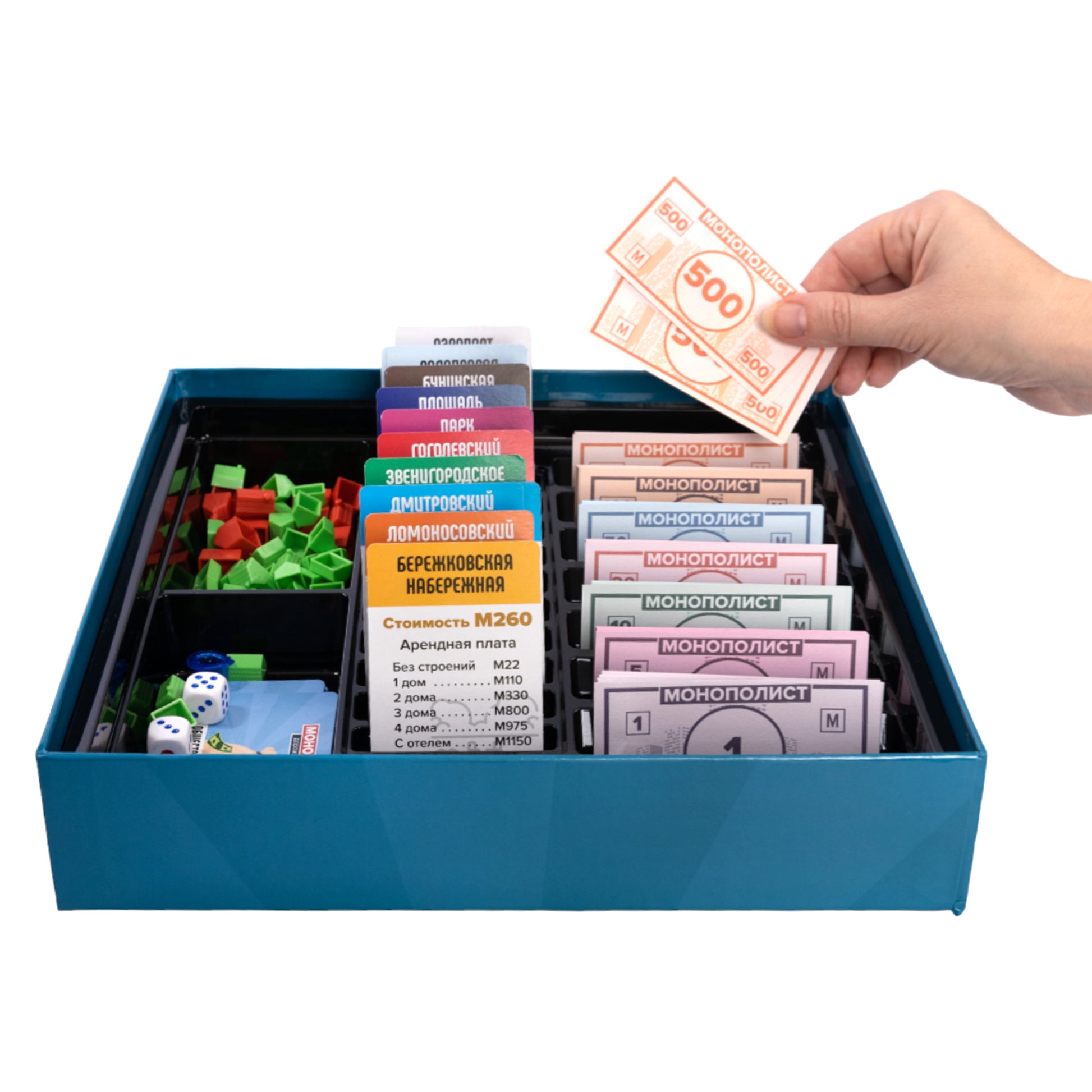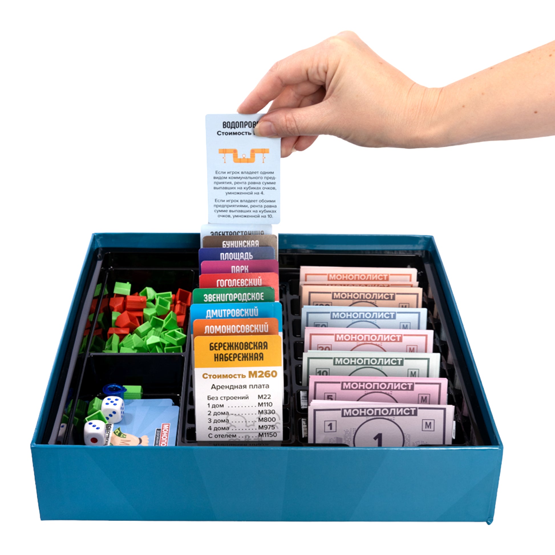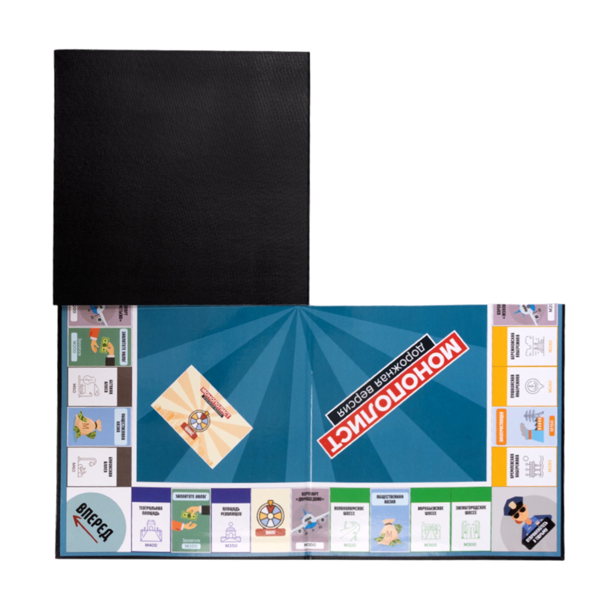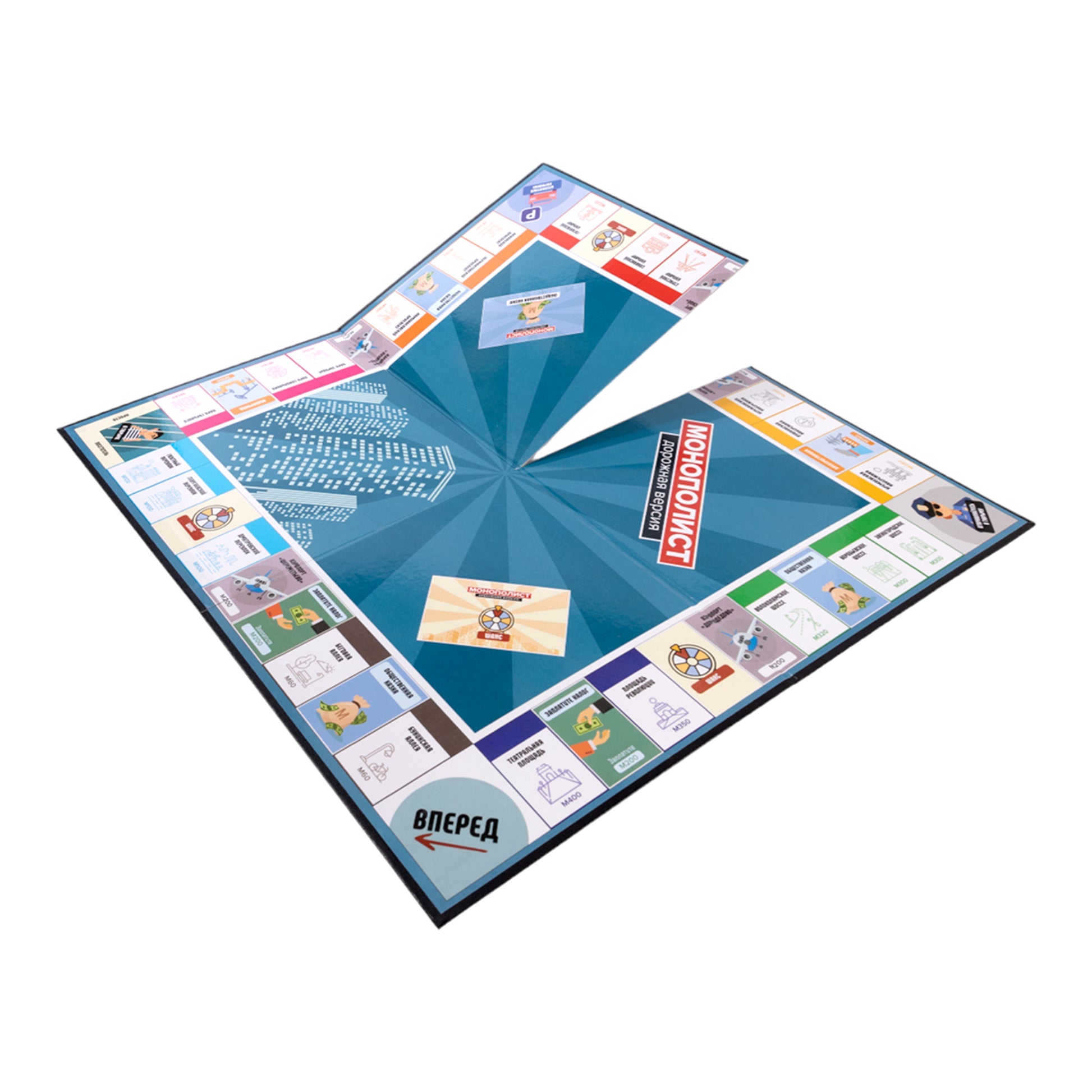 Игра настольная "Монополист" Дорожная версия. Состав игры: игровое поле - 50х50 см - 1 шт, игровые карточки - 64 шт. (8*5,5 см) 28 карточек собственности, 18 карточек "казна" и 18 карточек "ШАНС", пачка игровых денег - 210 шт. (9*4,5 см), кубики - 2 шт., фигурки домов и - 44 шт. (32 дома и 12), фигурки игроков - 8 шт. , Правила игры.картон, бумага, полимерный материал отелей. Для детей старше 12 лет.