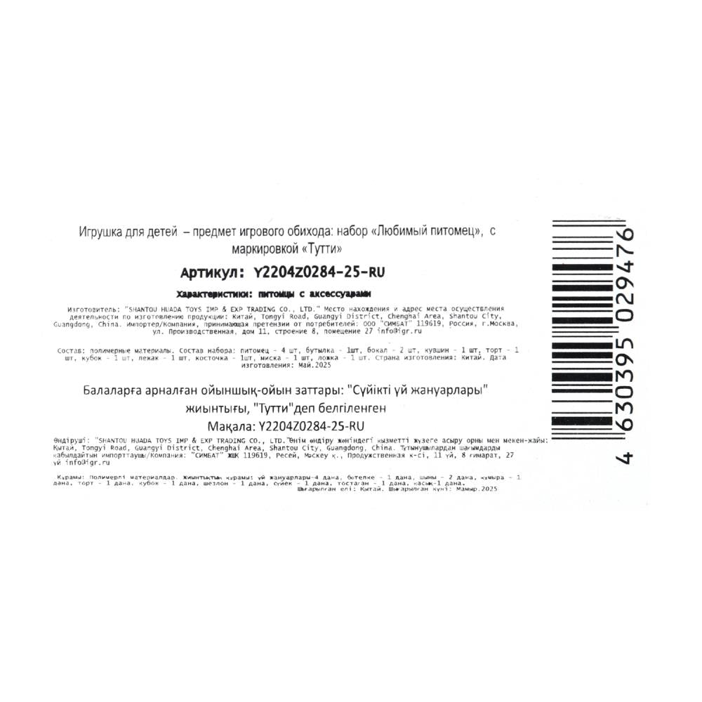 Игрушка "Игровой набор с питомцами и аксессуарами пластиковый, (4 питомца и 10 акс) Тутти в кор.2*216шт". Размер: 0,3.