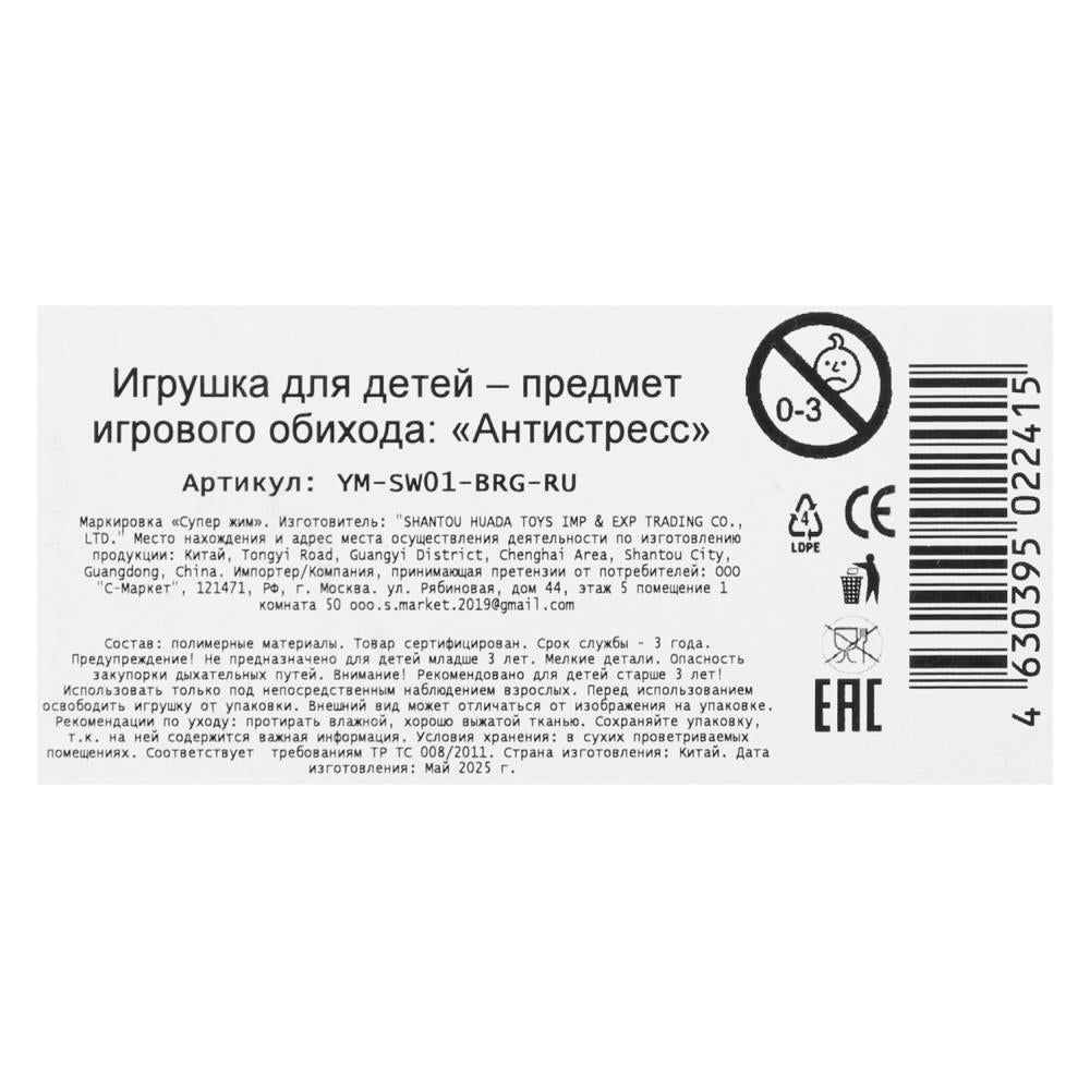 Игрушка "Игрушка-антистресс бургер супер-мялка Супер Жим уп-12упак в кор.6уп". Размер: 0,08.