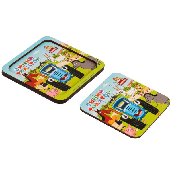 Игрушка деревянная пазл 10*10 см. СИНИЙ ТРАКТОР терм. пакет Буратино в кор.189шт