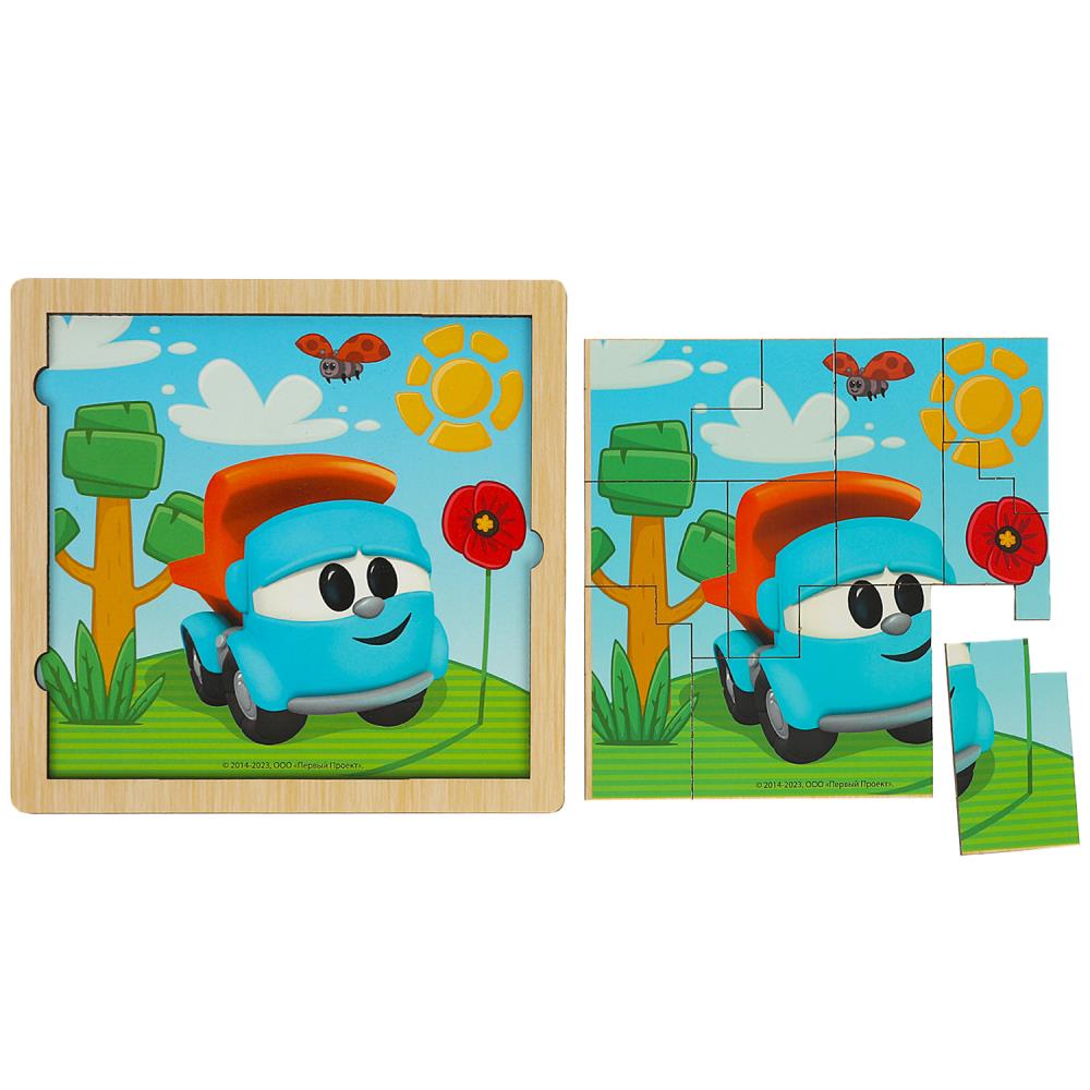 Игрушка деревянная рамка-вкладыш фигурная Грузовичок Лева 17*17 см, термопакет Буратино в кор.20шт