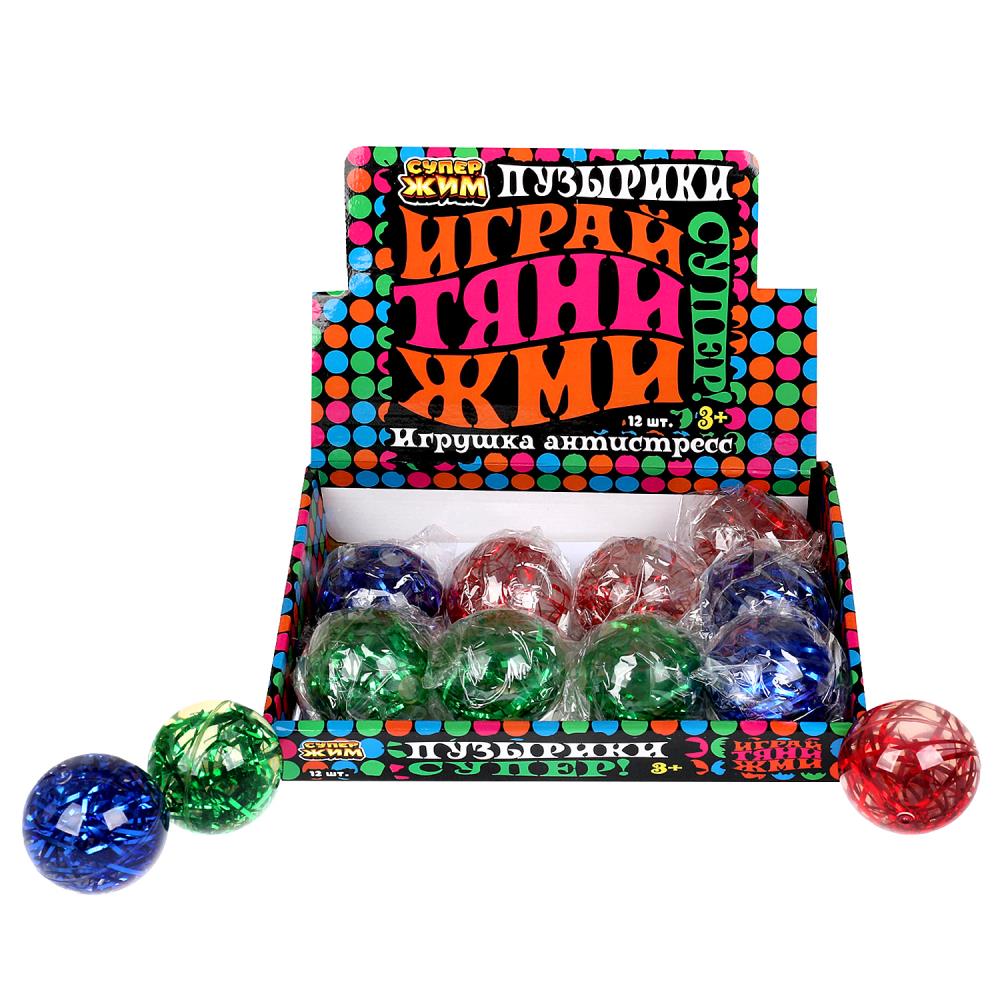 Игрушка жмяка мяч Со светом 6см, цвета в сборе, светодиод Супер Жим уп-12шт в кор.6уп