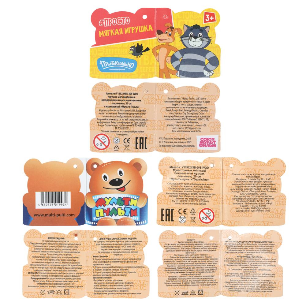 Игрушка мягкая Успенский Э.Н. пес шарик 20см, озвуч, в пак "МУЛЬТИ-ПУЛЬТИ" в кор.24шт