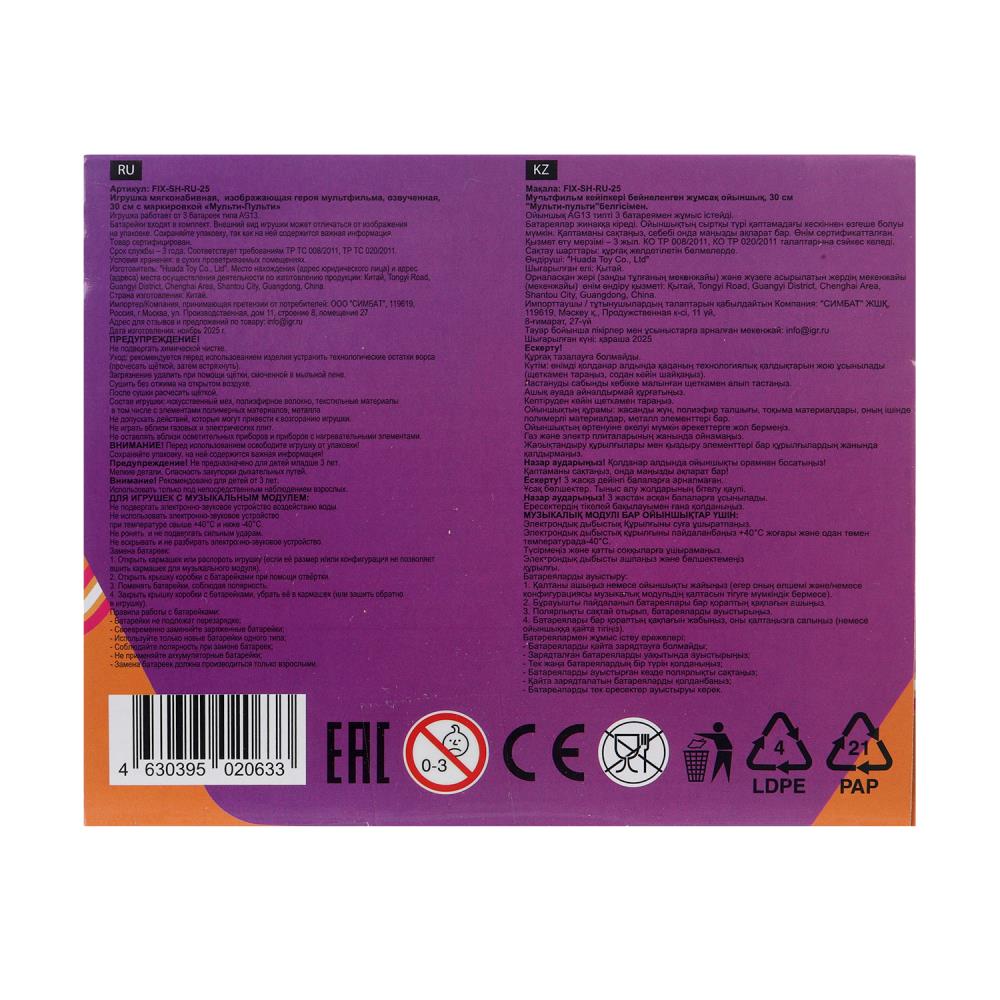 Игрушка мягкая Фиксики шпуля 27см, муз. чип, в кор. "МУЛЬТИ-ПУЛЬТИ" в кор.24шт