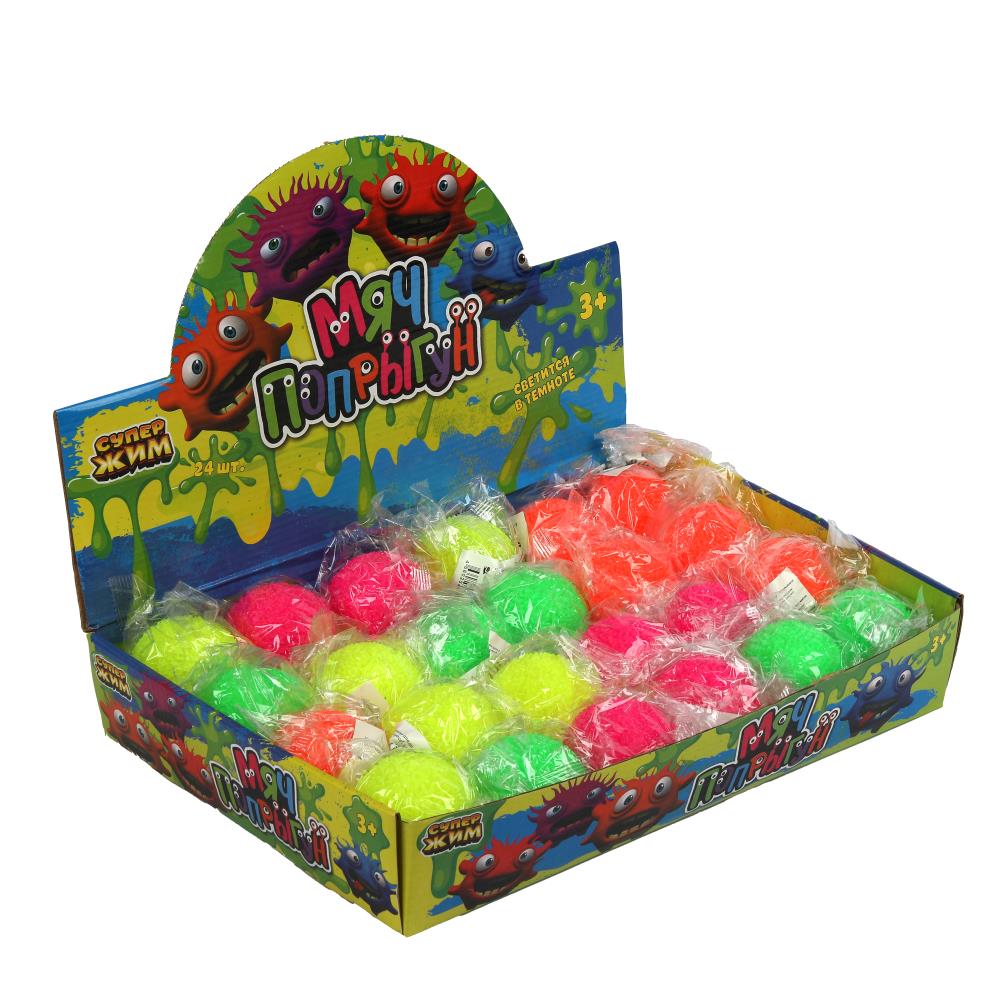 Игрушка мяч-попрыгун неоновый 6,5см, цвет в асс., Супер Жим уп-24шт в кор.6уп