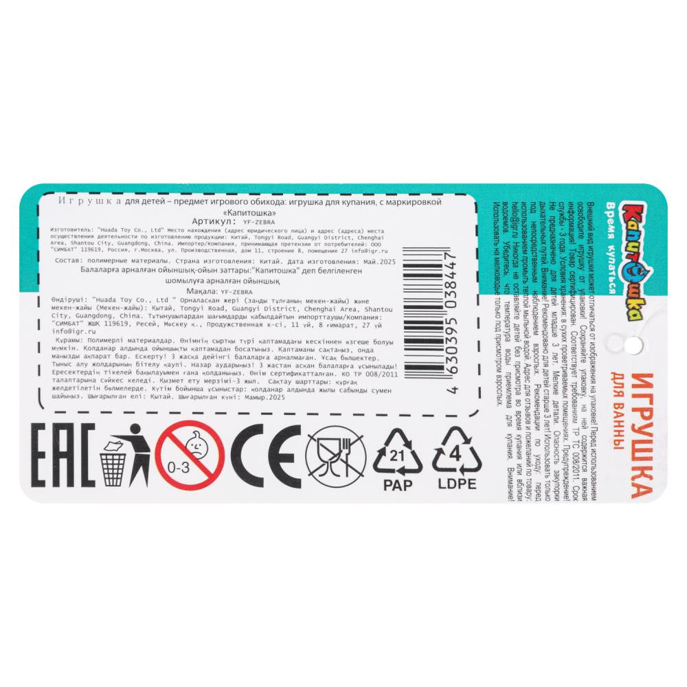 Игрушка "Игрушка пластизоль для ванны зебра, в сетке КАПИТОШКА в кор.2*144шт". Размер: 0,068295.