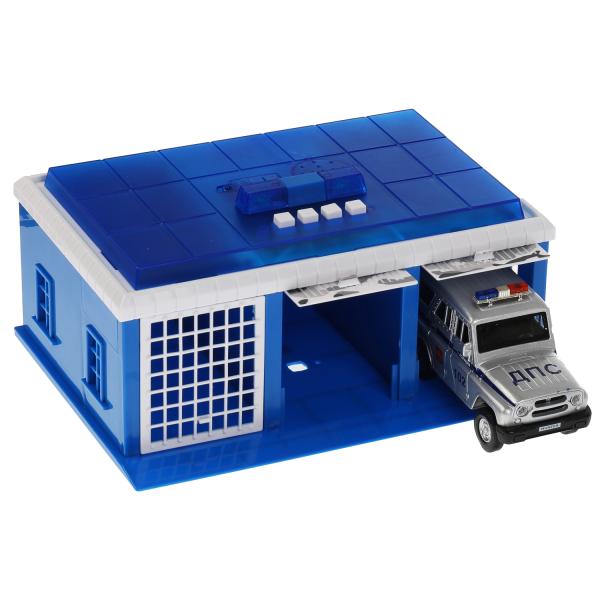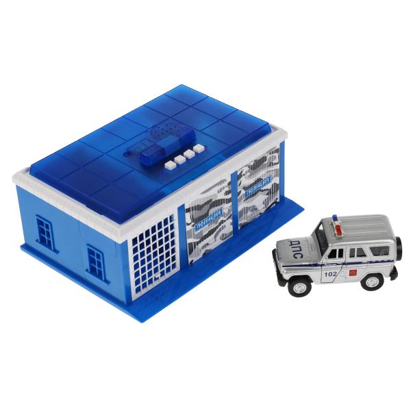 Игрушка пластик свет- ПОЛИЦЕЙСКИЙ УЧАСТОК 22 см, ворота, УАЗ ХАНТЕР,кор. Технопарк в кор.2*18шт