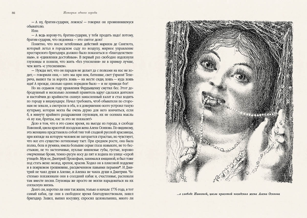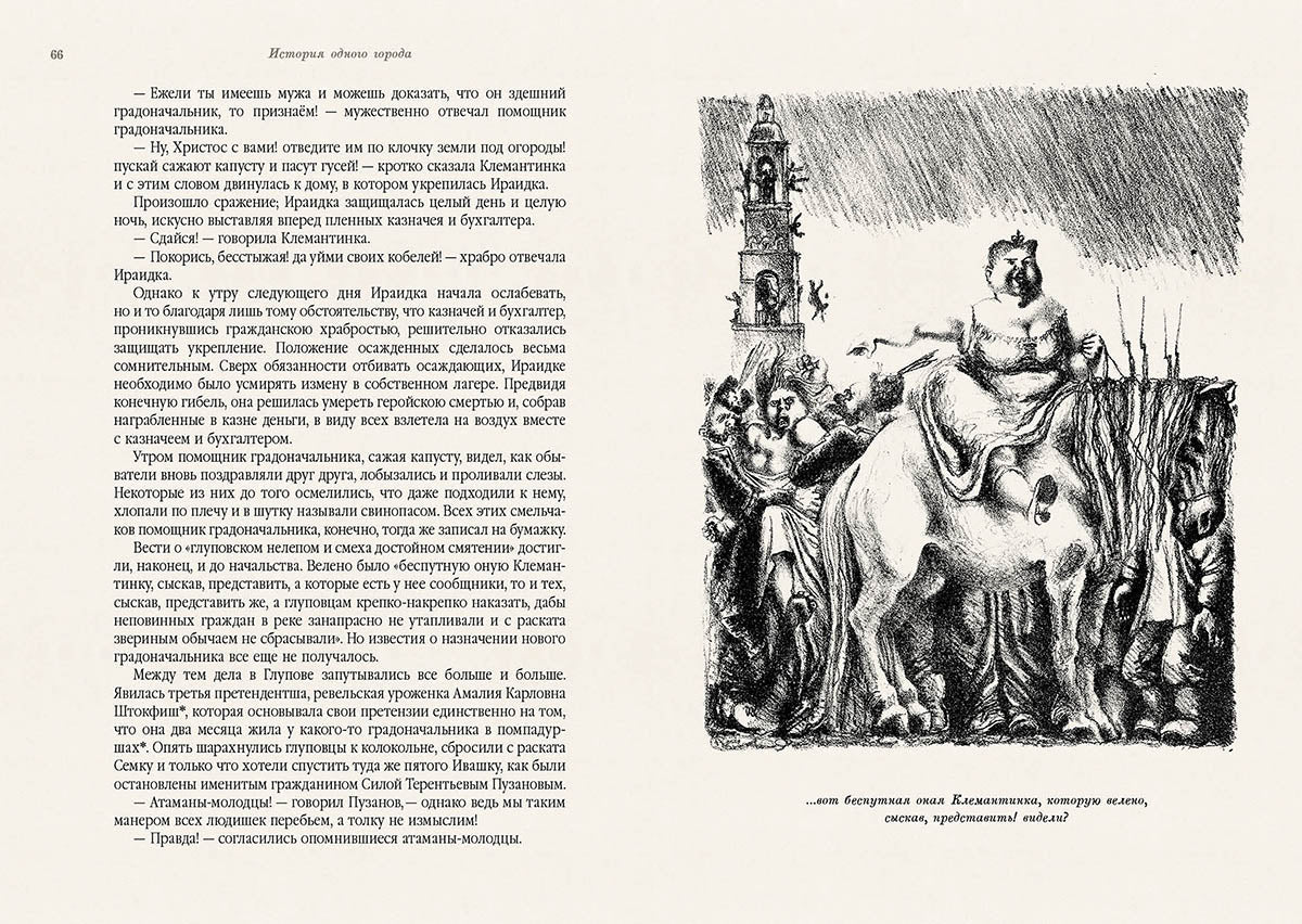 Handling time: 19 days Сатирический роман М. Е. Салтыкова-Щедрина «История одного города» являет собой пример вневременного произведения: меняются лишь чины и звания; глупость, жадность и желание выслужиться остаются неизменными. Примечательно, что чиновничью суть Салтыков-Щедрин знал не понаслышке, сам послужив в министерстве финансов, а до того и вице-губернатором. Литографии Александра Самохвалова вызывают ощущение, что художник не только жил в описываемое время, но и был непосредственным участником событий. И даже факт создания этих иллюстраций в 1933 году не отменяет чувства глубокой сопричастности автора рисунков к сюжету романа.С О Д Е Р Ж А Н И Е История одного города. По подлинным документам издал М. Е. Салтыков (Щедрин) От издателяОбращение к читателю от последнего архивариуса-летописцаО корени происхождения глуповцев Опись градоначальникам в разное время в город Глупов от вышнего начальства поставленным (1731–1826) Органчик Сказание о шести градоначальницах. Картина глуповского междоусобия Известие о Двоекурове Голодный город Соломенный город Фантастический путешественник Войны за просвещениеЭпоха увольнения от войнПоклонение мамоне и покаяниеПодтверждение покаяния. Заключение Оправдательные документы I. Мысли о градоначальническом единомыслии, а также о градоначальническом единовластии и о прочем. Сочинил глуповский градоначальник Василиск Бородавкин II. О благовидной всех градоначальников наружности. Сочинил градоначальник князь Ксаверий Георгиевич МикаладзеIII. Устав о свойственном градоправителю добросердечии. Сочинил градоначальник БеневоленскийПриложение