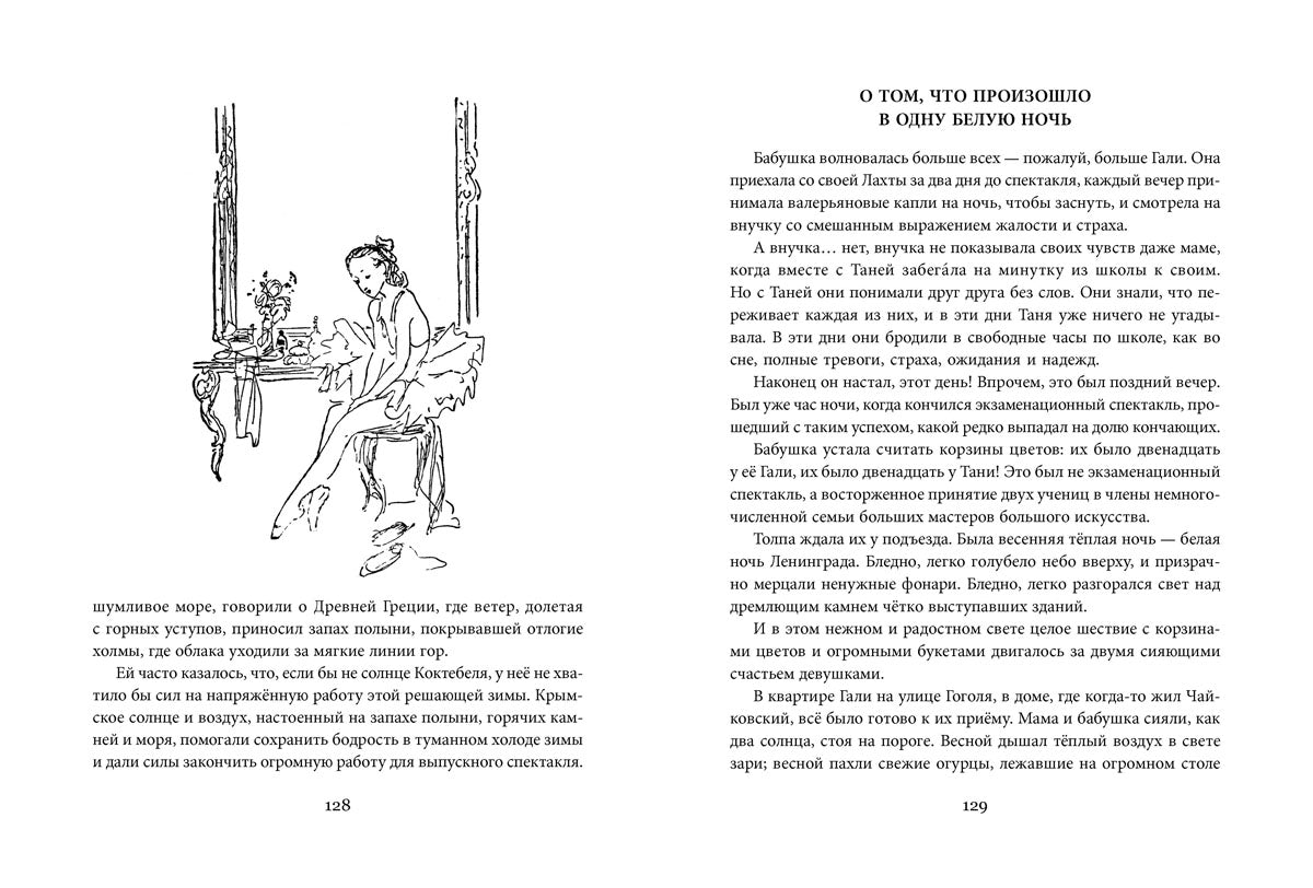 Handling time: 24 days Эта книга - о детстве и юности известной балерины Галины Улановой. Повесть о том, как девочка Галя искала свой творческий путь, преодолевая трудности и борясь с искушением повернуть назад. Как прошла вместе со своей страной все самые страшные испытания - войны и голод - и как пережила свои собственные невзгоды в разлуке с родным домом в непростой среде балетной школы. Из книги юный читатель узнает, что искусство требует от человека не только таланта, но и ежедневного труда и усердия, воспитания воли и сильного характера. От автора Эта книга рассказывает о детстве замечательной советской балерины, народной артистки Советского Союза Галины Сергеевны Улановой. Её имя известно во всех странах мира, всюду, где люди любят и чтут искусство, а любят его и маленькие, и большие. Галина Сергеевна Уланова рассказывала мне о годах своего детства и учения в балетной школе, а я потом по её рассказам и отчасти по моим собственным театральным воспоминаниям написала эту книгу. Мне хотелось, чтобы мои юные читатели узнали о том, какая трудная и большая, какая напряжённая работа предшествует тому радостному искусству танца, которое мы все так любим и которое кажется таким лёгким и весёлым. Настоящее искусство требует неуклонного и ежедневного труда в течение всей жизни, и жизнь каждого художника прежде всего отдана его творчеству. Так и жизнь Галины Сергеевны Улановой отдана её творческой работе, и потому-то она стала великой танцовщицей и замечательной актрисой, каждое появление которой на сцене даёт нам такую большую радость. М. Сизова 1960-е годы Текст печатается по изданию: Сизова М. История одной девочки. Киев : Государственное издательство детской литературы УССР, 1963.