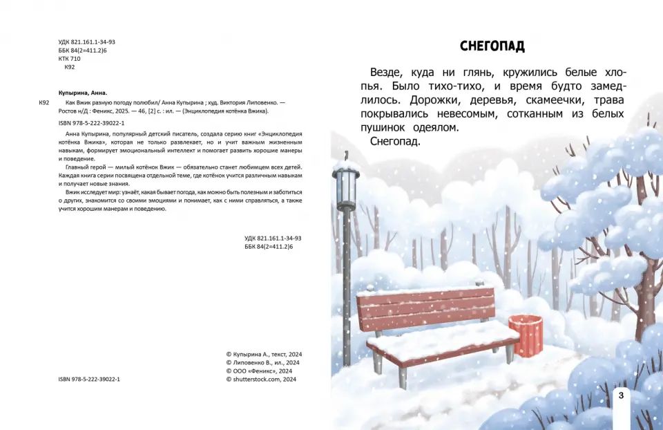 Анна Купырина, популярный детский писатель, создала серию книг "Энциклопедия котёнка Вжика", которая не только развлекает, но и учит важным жизненным навыкам, формирует эмоциональный интеллект и помогает развить хорошие манеры и поведение.Главный герой - милый котёнок Вжик - обязательно станет любимцем всех детей. Каждая книга серии посвящена отдельной теме, где котёнок учится различным навыкам и получает новые знания.Вжик исследует мир: узнаёт, какая бывает погода, как можно быть полезным и заботиться о других, знакомится со своими эмоциями и понимает, как с ними справляться, а также учится хорошим манерам и поведению.