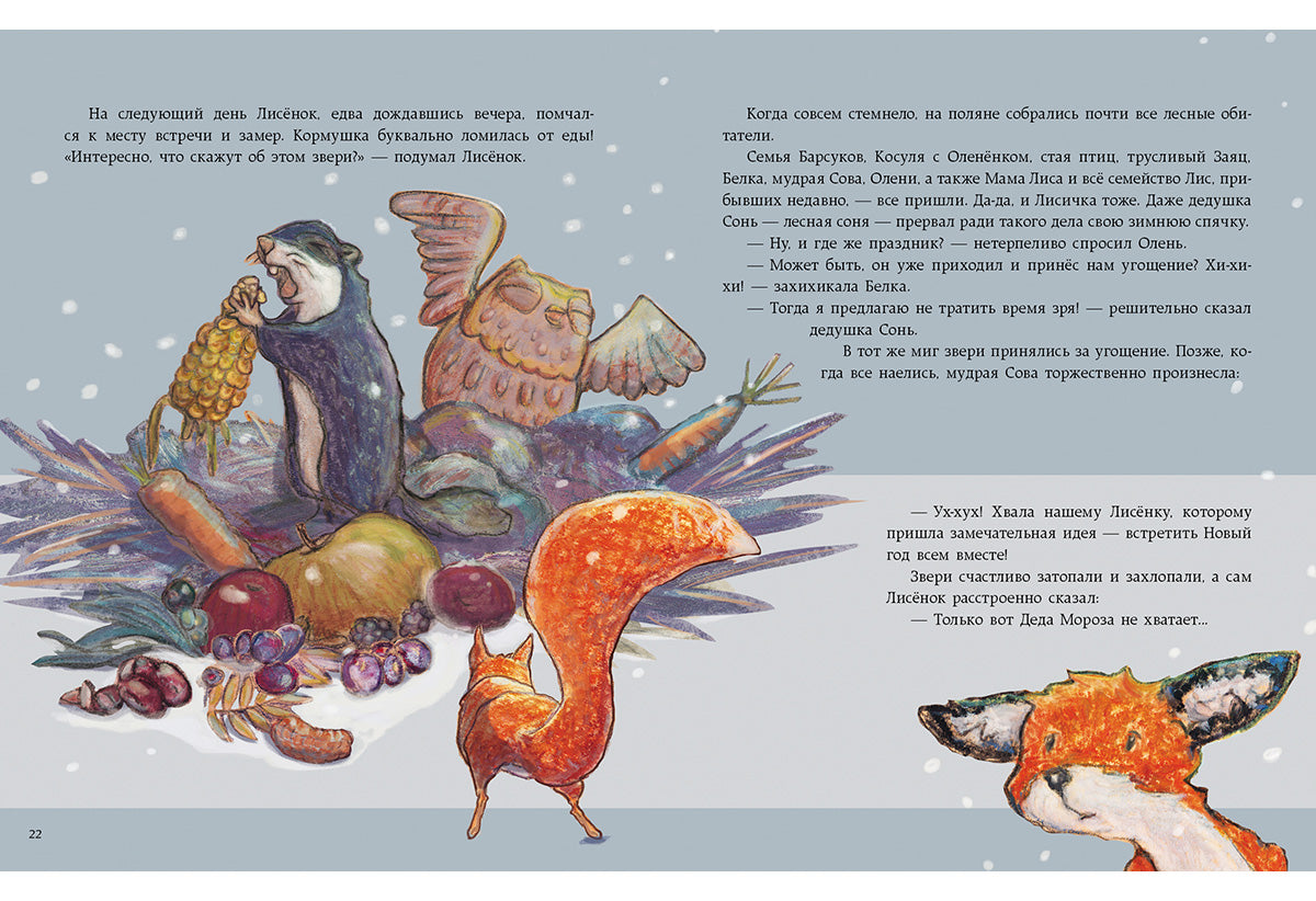 Handling time: 24 days Однажды утром лес, в котором живёт Лисёнок со своей мамой в одно мгновение преобразился и стал волшебным! Всё покрылось мерцающим, пушистым снегом, а воздух вдруг наполнился ожиданием Нового года. Что это за удивительный праздник? А как его отмечать и кто будет дарить подарки? Лисёнок захотел узнать об этом празднике как можно больше и конечно же, решил отпраздновать его в кругу друзей.