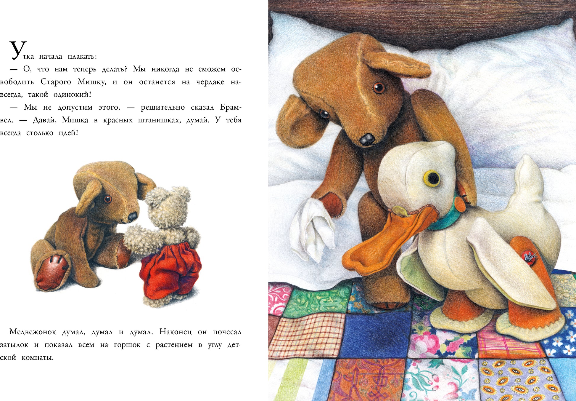 Handling time: 19 days Пару лет назад Когда английской художнице Джейн Хисси исполнилось три года, бабушка подарила ей плюшевого медвежонка. Он стал любимой игрушкой маленькой девочки. И когда Джейн выросла и решила написать детскую книгу, главным героем она выбрала этого медвежонка. К тому времени он уже действительно стал Старым Мишкой. Книги о Старом Мишке и его друзьях стали очень популярны во всём мире. Теперь их можете прочитать и вы.Старого Мишку положили в коробку и убрали на чердак. Дети играли с ним неосторожно и совсем не берегли его, поэтому родители решили спрятать Мишку. Но прошло время, дети подросли и забыли про него. И вот в один прекрасный день коричневый мишка Брамвел понял, что пришло время спасать друга - ведь на чердаке ему, наверное, так одиноко! Вместе с другими игрушками - Мишкой в красных штанишках, Уткой и Кроликом он стал придумывать план возвращения Старого Мишки...Книга для детей до трех летАвтор текста и художник Джейн Хисси