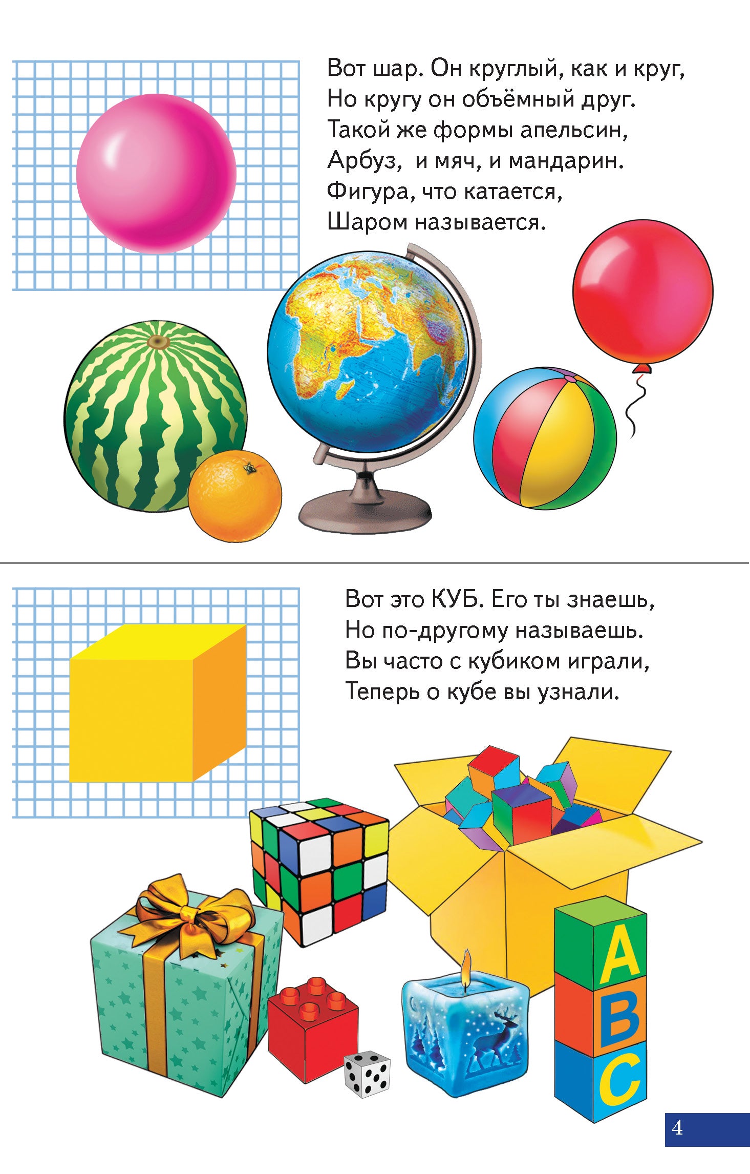 Автор этого набора карточек (создатель и генеральный директор Образовательного Центра "Чудо-обучайка") в стихотворной форме знакомит дошкольников с плоскими и объемными геометрическими фигурами (круг, овал, треугольник, квадрат, ромб, прямоугольник, шар, куб, пирамида, конус, цилиндр, параллелепипед) и цветами (красный, желтый, синий, оранжевый, фиолетовый, зеленый, белый, голубой, розовый, коричневый, черный, серый), рассказывает, как они смешиваются и какие цвета относятся к теплым и холодным. Красочные иллюстрации покажут ребенку, где он может встретить эти фигуры и цвета.