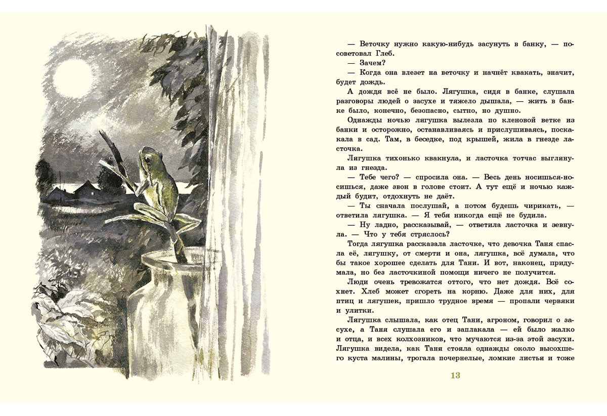 Из сказки "Квакша" юный читатель узнает, как маленькая древесная лягушка в благодарность за своё спасение предсказала дождь, чтобы помочь людям вырастить урожай.