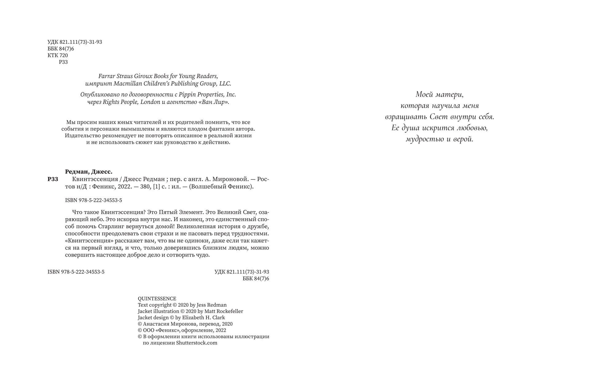 Что такое Квинтэссенция? Это Пятый Элемент. Это Великий Свет, озаряющий небо. Это искорка внутри нас. И наконец, это единственный способ помочь Старлинг вернуться домой! Великолепная история о дружбе, способности преодолевать свои страхи и не пасовать перед трудностями. "Квинтэссенция" расскажет вам, что вы не одиноки, даже если так кажется на первый взгляд, и что, только доверившись близким людям, можно совершить настоящее доброе дело и сотворить чудо.