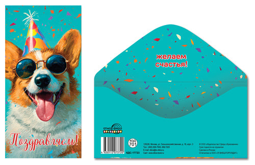 КДС-17723 Конверт для денег на склейке. Поздравляем! (унисекс, собака)