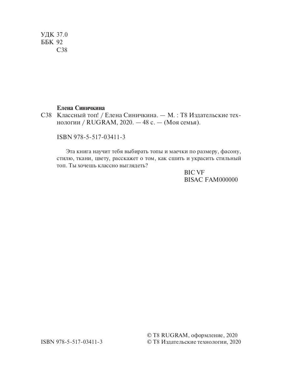 Handling time: 19 days Аннотация к книге "Классный топ! Книга для девчонок" Синичкина Е.:Эта книга научит тебя выбирать топы и маечки по размеру, фасону, стилю, ткани, цвету, расскажет о том, как сшить и украсить стильный топ. Ты хочешь классно выглядеть? Читать дальше…
