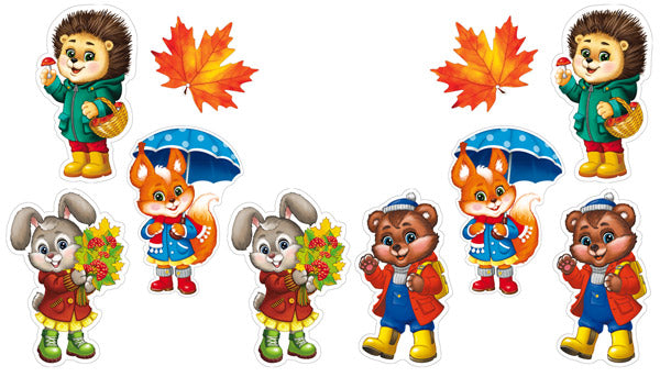 *КМ-17569 Комплект для оформления интерьера на скотче. Маленькие лесные жители (4 фигуры зверей А3 по 2 шт., фигура листика по 2 шт.)