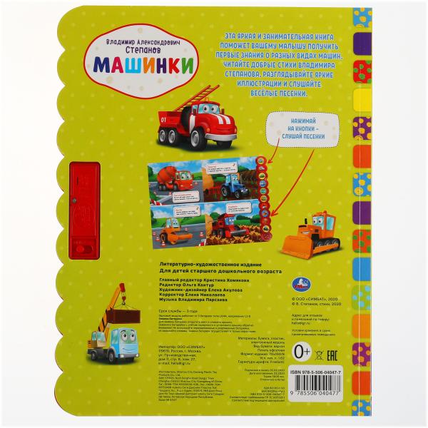 Книга детская машинки СТЕПАНОВ В.А. (10 звук. кн. кругл) 233х302мм, 10стр Умка