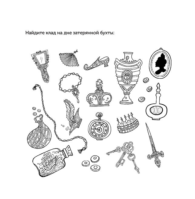 Морские глубины с незапамятных времен будоражили воображение уважаемых пассажиров, бесстрашных пиратов и отчаянных романтиков. Этот неведомый мир не просто живет особенной жизнью, но еще и хранит несметные богатства, доставшиеся ему «по наследству» от затонувших кораблей, отыскать которые не так-то просто. Но если вы готовы рискнуть и попробовать счастье, значит, нам по пути! Во время путешествий по страницам раскраски уже знакомого вам английского иллюстратора Джессики Палмера вам предстоит не только отыскать предметы, веками пролежавшие на дне морском, но и угадать, кем были их хозяева. Главное – не забудьте взять в дорогу цветные карандаши и ручки, чтобы вернуть этим вещам прежнее очарование. Кроме того, по дороге вам поджидают сюрпризы. Ну где еще вы встретите акул, гоняющих на велосипедах, морских коньков, развалившихся в шезлонгах, жутких существ, словно сошедших с экрана фантастического фильма, русалку-амазонку и невероятного красавца-водяного?! Заинтригованы? Тогда не теряйте драгоценные минуты и скорее отправляйтесь в дорогу! И помните, морские силы так просто не уступят свои сокровища!