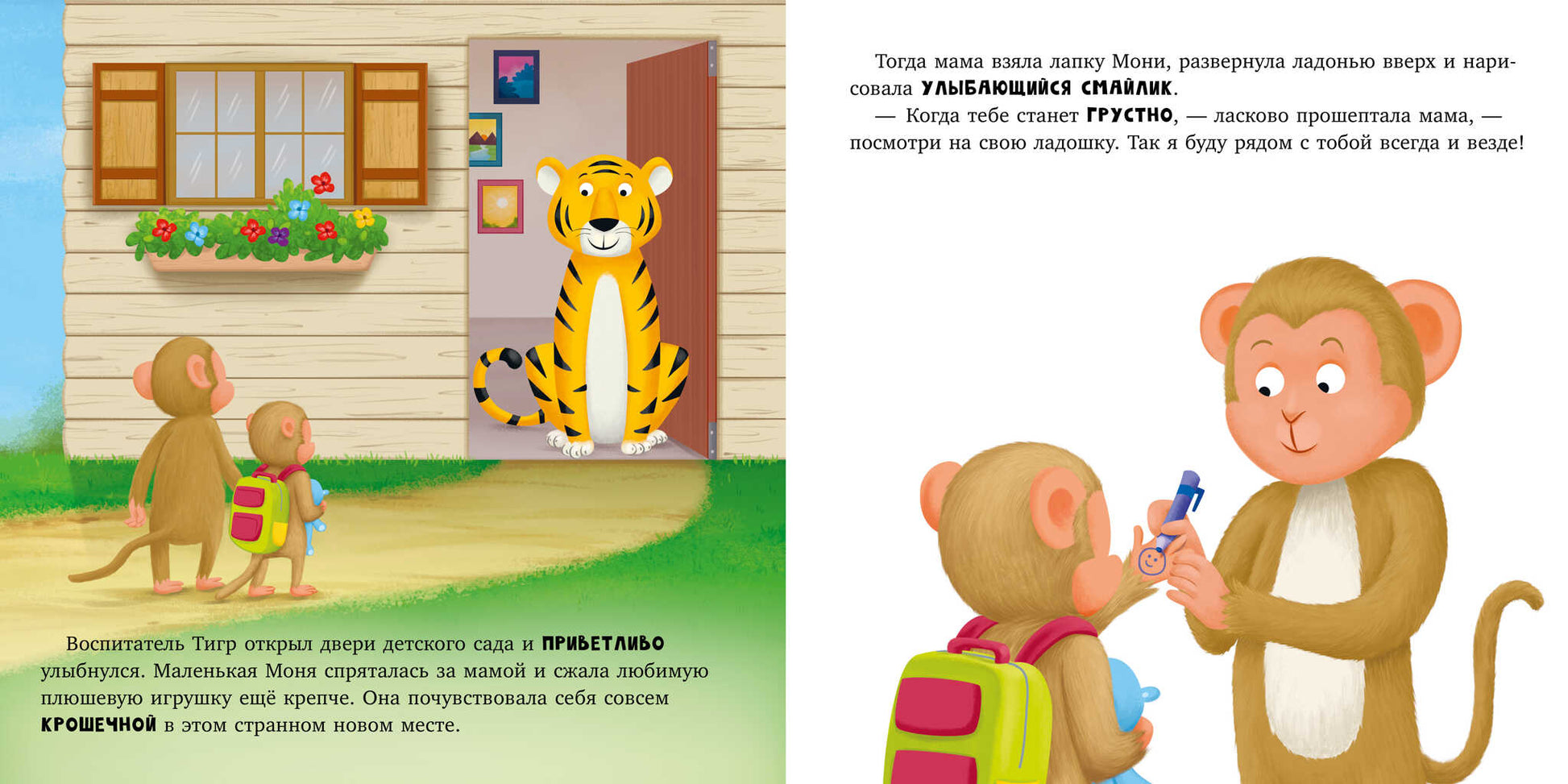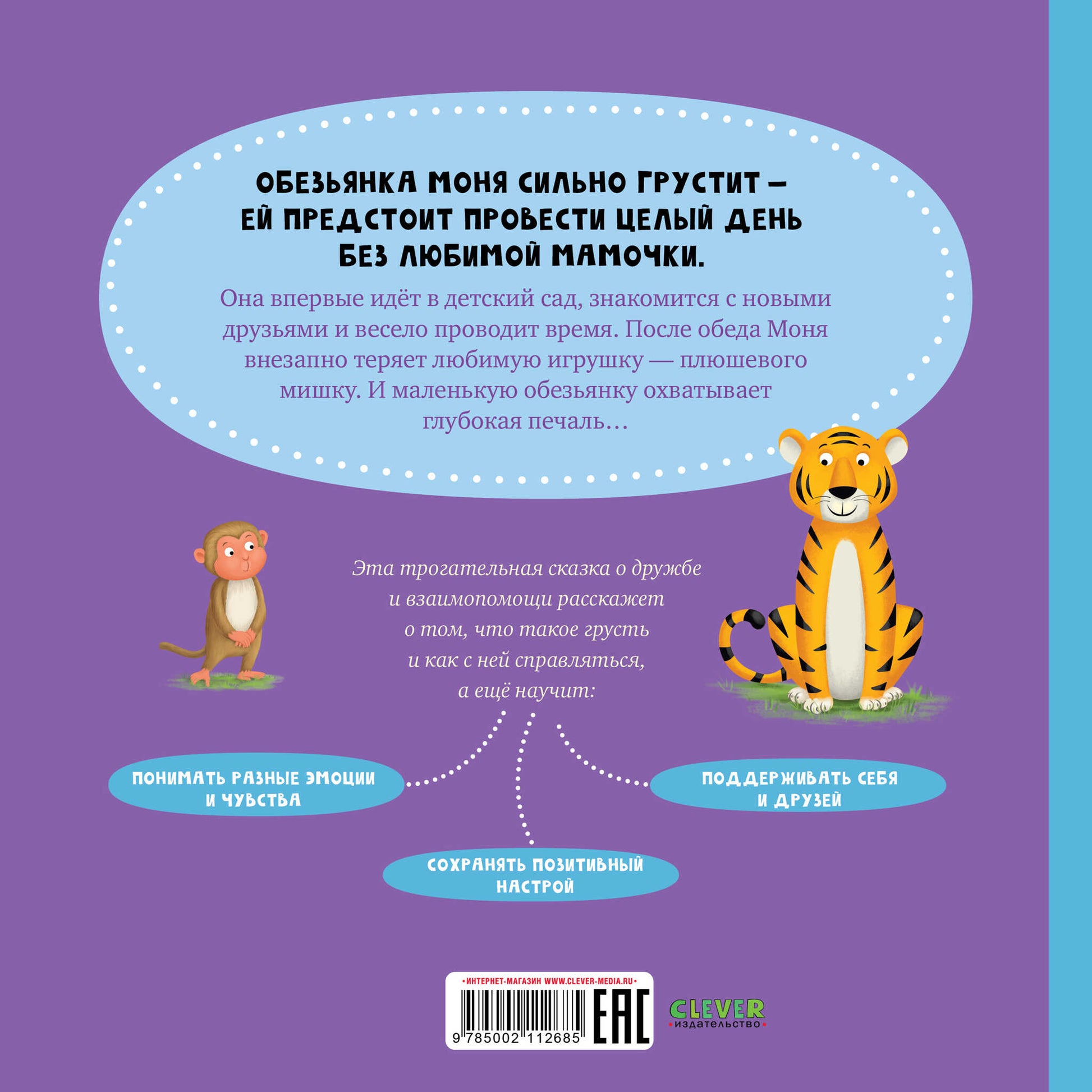 Книжки-картинки. Обезьянка грустит/Кэри Д. Обезьянка Моня сильно грустит - ей предстоит провести целый день без любимой мамочки. Она впервые идёт в детский сад, знакомится с новыми друзьями и весело проводит время. После обеда Моня внезапно теряет любимую игрушку - плюшевого мишку. И маленькую обезьянку охватывает глубокая печаль… Эта трогательная сказка о дружбе и взаимопомощи расскажет о том, что такое грусть и как с ней справляться, а ещё научит: • понимать разные эмоции и чувства • поддерживать себя и друзей • сохранять позитивный настрой ...