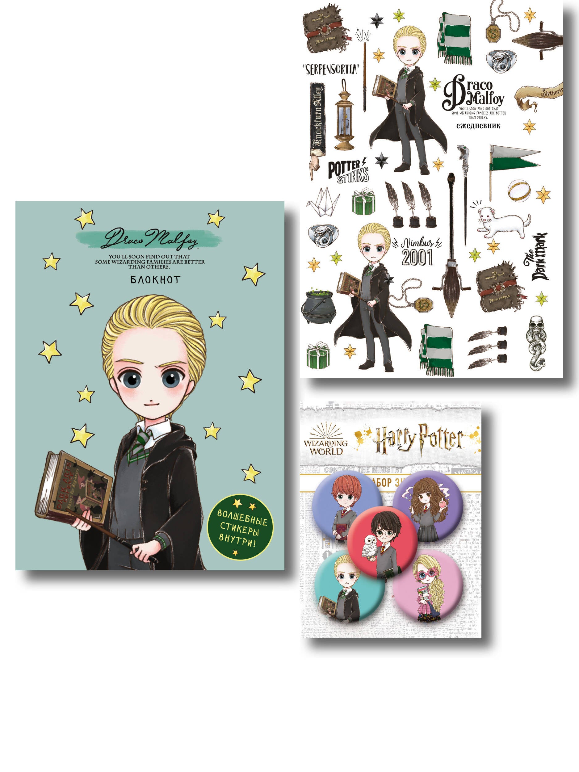 Комплект. Набор по Гарри Поттеру. Драко Малфой (Блокнот+ ежедневник+значки) (ИК)