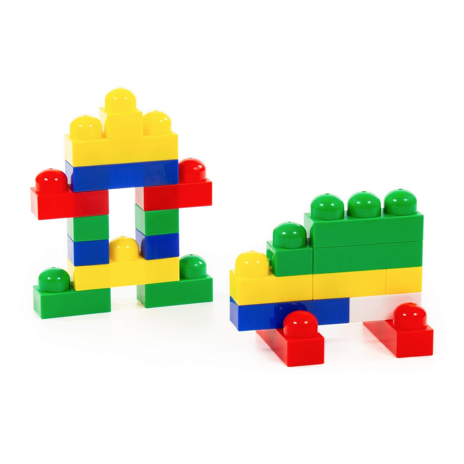 Handling time: 24 days В комплект набора входят детали пяти цветов – красные, синие, желтые, зеленые, белые, трех видов – одинарные (4х3х3 см), двойные (4х6х3 см) и тройные (4х9х3 см). Детали конструктора достаточно крупные и подойдут для самых маленьких детей. Детали плотно прилегают друг к другу, легко и прочно крепятся между собой. Из деталей конструктора ваш ребенок может собирать различные постройки – домики, башенки и другие. Во время игры ребенок усвоит основные цвета. 33 элемента