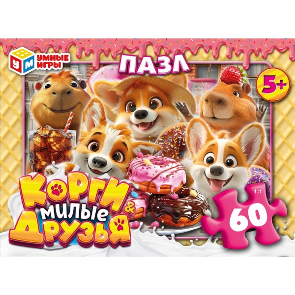 Корги и милые друзья. Пазлы в коробке 60 деталей. 190х141х35 мм. Умные игры в кор.24шт